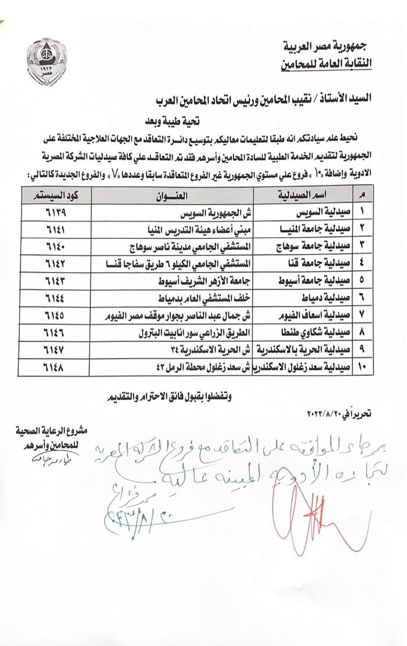 نقابة المحامين تتعاقد على 10 صيدليات جديدة موزعة على مستوى الجمهورية