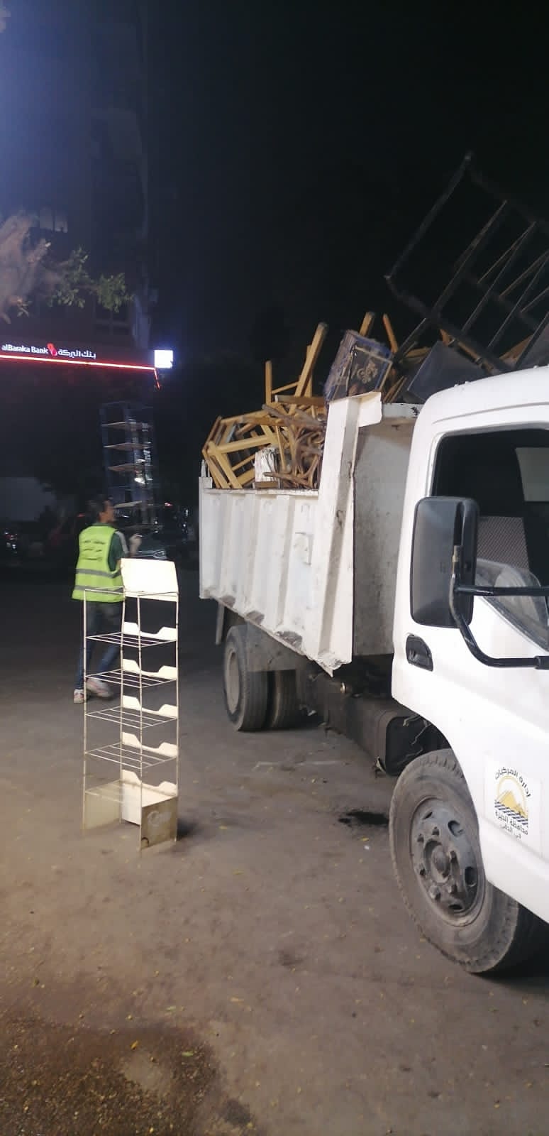 كما تم مصادرة المخالفات الخاصة بالكافيهات من كراسي وترابيزات متعدية على الطريق العام ومكبرات الصوت واتخاذ كافة الإجراءات القانونية.