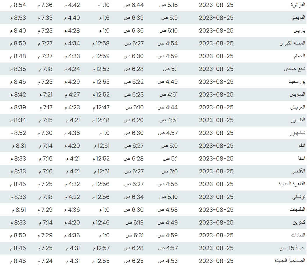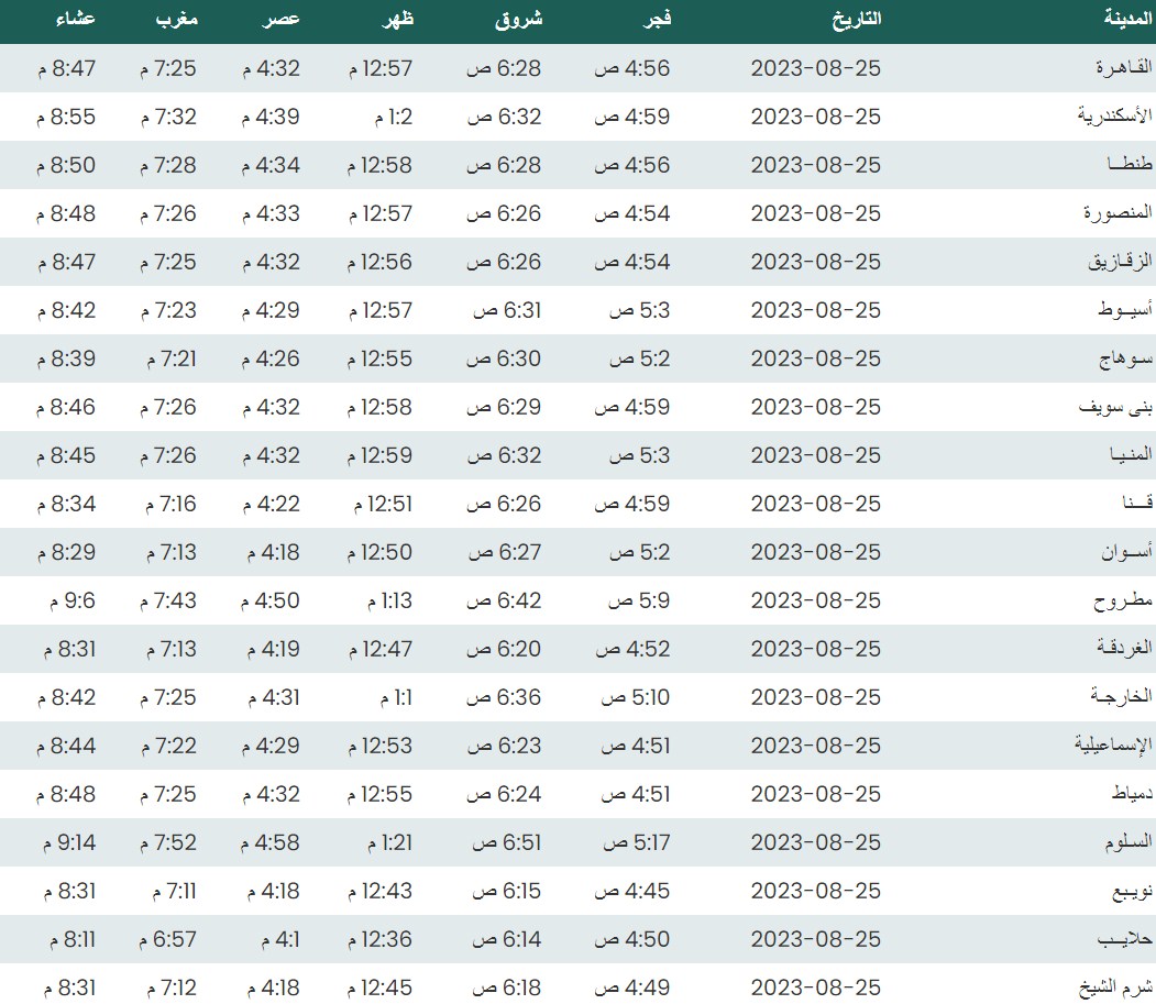 مواقيت الصلاة اليوم بتوقيت القاهرة