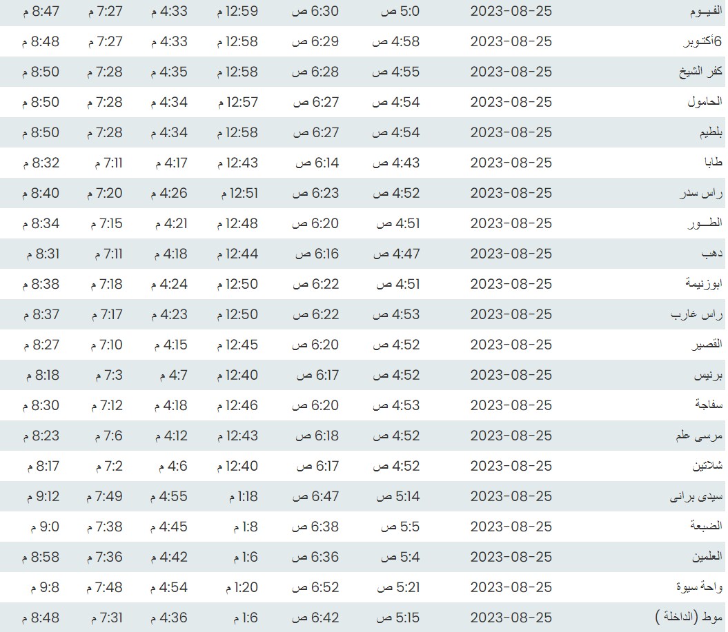 مواقيت الصلاة اليوم بتوقيت أسيوط