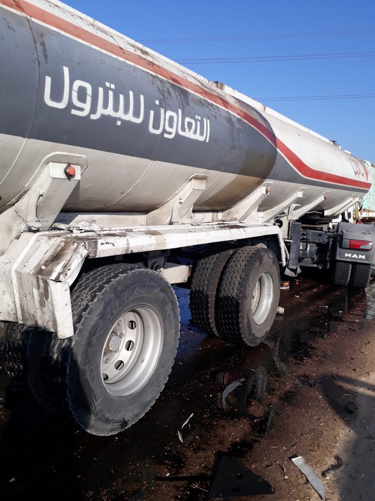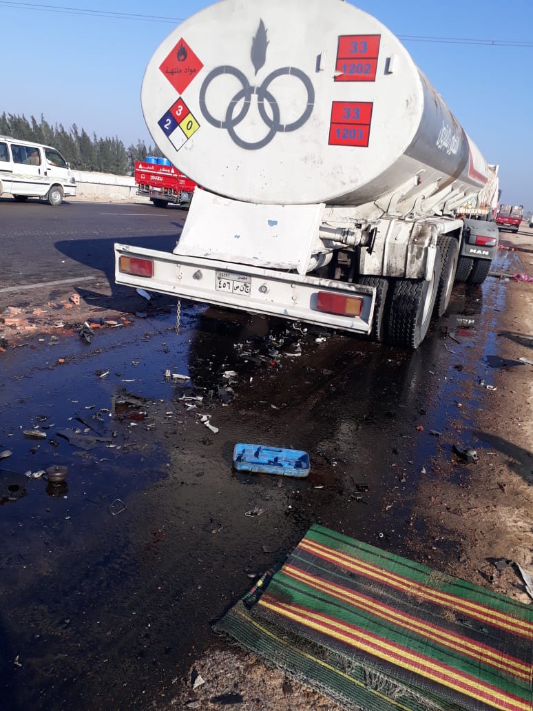 مصرع سائق وإصابة مساعده فى حادث اصطدام سيارة مواد بترولية بأخرى متعطلة