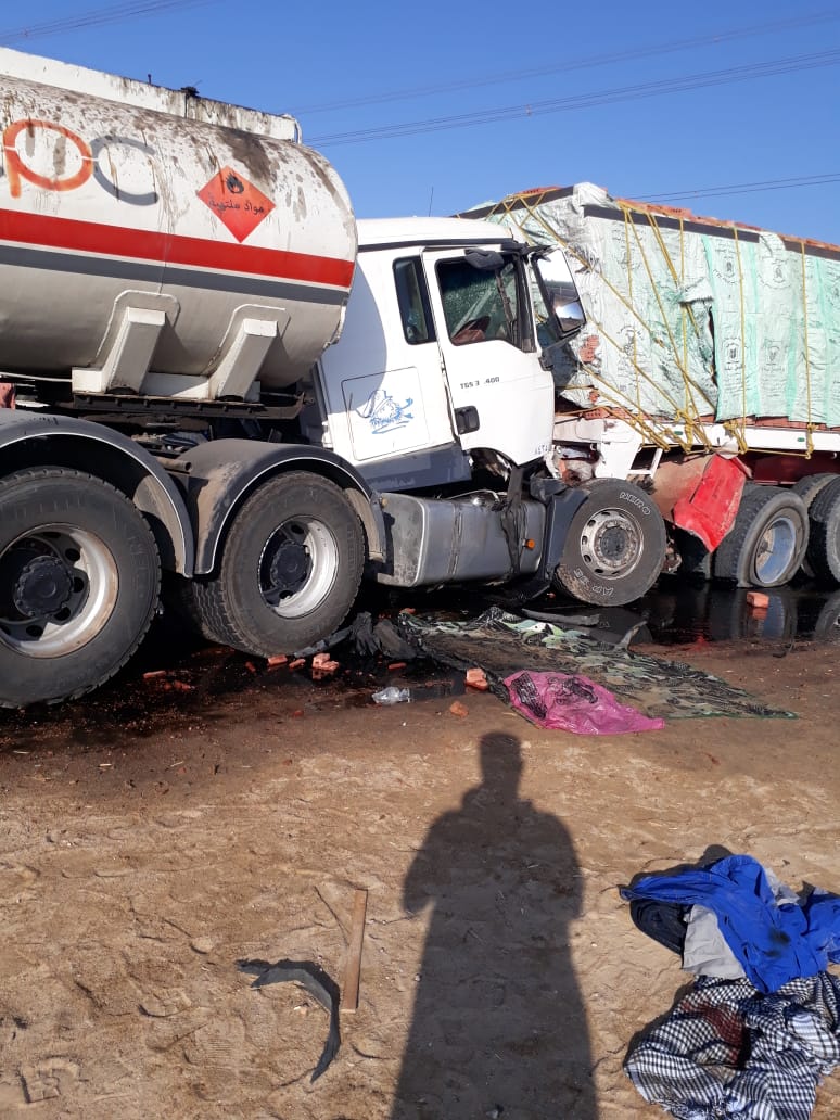 شهد طريق الإسكندرية الصحراوي حادث اصطدام سيارة محملة بمواد بترولية بأخرى نقل ثقيل متعطلة مما أسفر عن مصرع السائق وإصابة مساعده، وأنقذت العناية الألهية مرتادي الطريق من كارثة انفجار السيارة بالمواد البترولية.