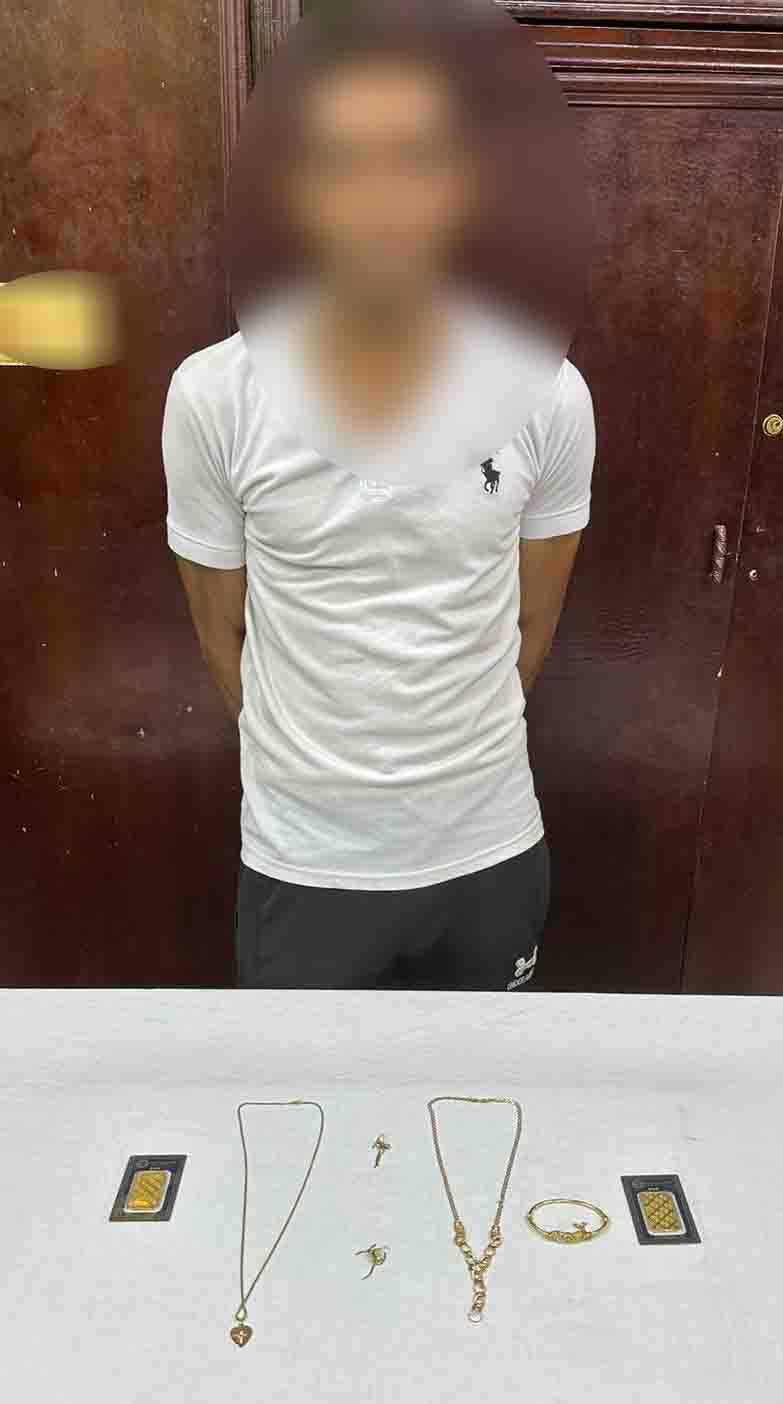 وتم ضبط (أحد الأشخاص "له معلومات جنائية" - مقيم بمحافظة بالمنيا) حال تواجده بدائرة قسم شرطة الأزبكية، وبحوزته (مشغولات ذهبية).. وبمواجهته اعترف بسرقتها من داخل فيلا كائنة بمحافظة الشرقية بأسلوب "التسلق وكسر الشباك".
