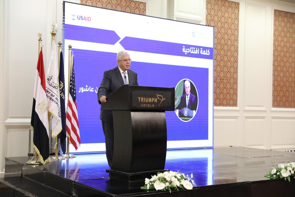 وأشار د. أيمن عاشور إلى أننا اليوم بصدد إطلاق ورشة العمل الخاصة ببرنامج رواد وعلماء مصر والممول من الوكالة الأمريكية للتنمية الدولية، موجهًا الشكر للوكالة الأمريكية للتنمية الدولية على دعمها لإستراتيجية التعليم العالى والبحث العلمى من خلال دعم العديد من البرامج والمشروعات التي تسهم في وضع آليات لتنفيذ استراتيجيات التعليم العالى والبحث العلمى في مصر، موضحًا أن وزارة التعليم العالي والبحث العلمي تتعاون مع الجامعة الأمريكية بالقاهرة في إدارته وتنفيذه، موجهًا الشكر للجامعة الأمريكية بالقاهرة على جهودها في التعاون مع الوزارة لتنفيذ برنامج رواد وعلماء مصر، لافتًا إلى أن البرنامج يشمل تقديم منح لتطوير قدرات الكوادر البشرية في القطاع الحكومي والخاص تتفق مع أهداف الإستراتيجية الوطنية للعليم العالي والبحث العلمي، مؤكدًا أن ورشة العمل اليوم تعد ثمرة من ثمار التعاون المستمر بين وزارة التعليم العالي والبحث العلمي والوكالة الأمريكية للتنمية الدولية.