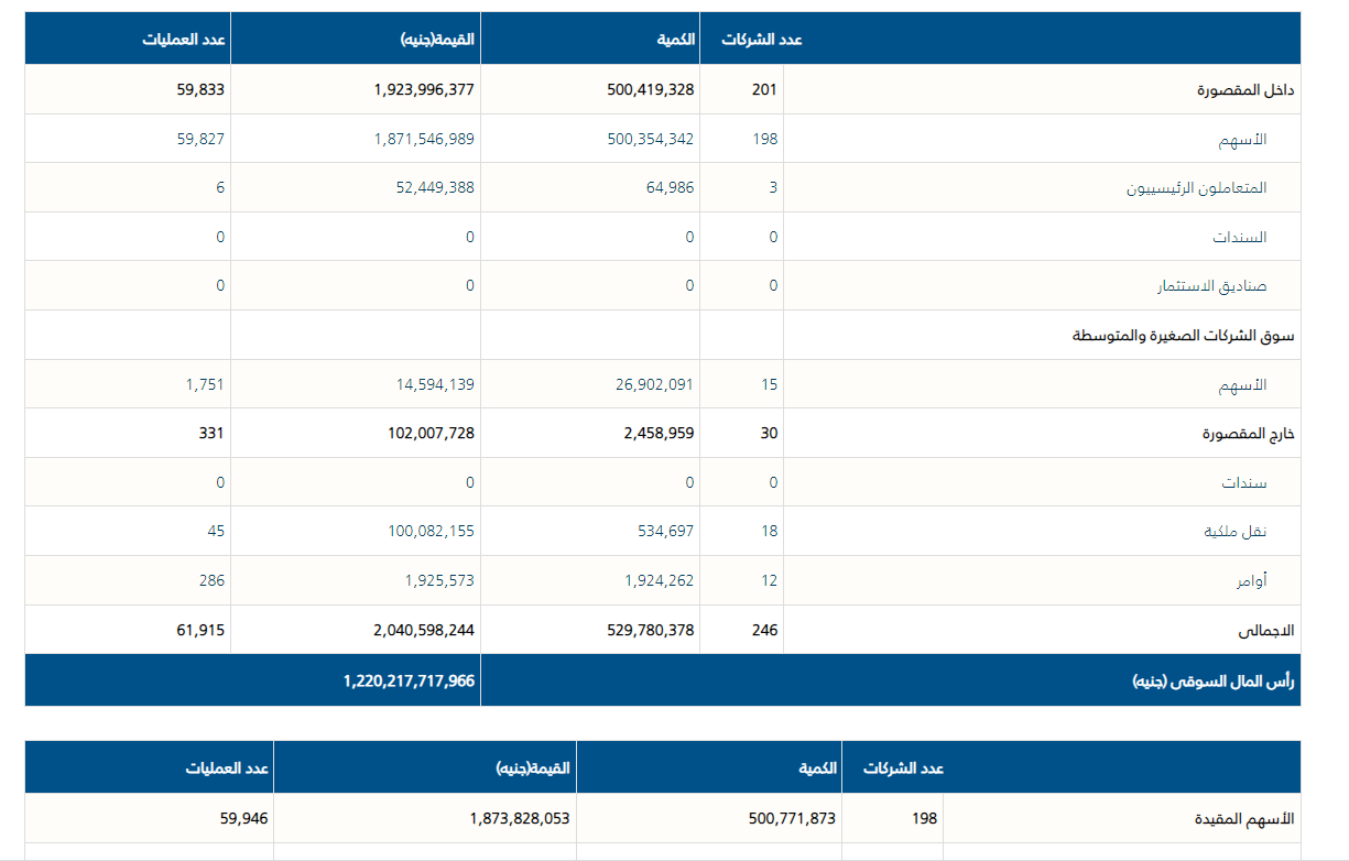 حركة التعاملات حتى الآن بالبورصة المصرية