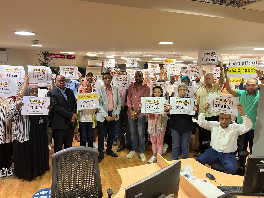 وأعلن العاملون في مكتب هيئة الإذاعة البريطانية (BBC) بالقاهرة عن دخولهم في إضراب عن العمل لمدة 10 أيام قابلة للتمديد، وذلك احتجاجًا على تدني رواتبهم وتدهور أوضاعهم المعيشية والسلوك التمييزي الذي تنتهجه المؤسسة ضدهم فيما يخص السياسيات المالية.