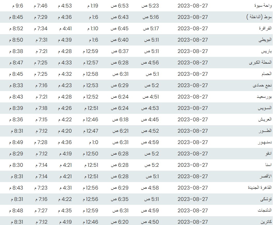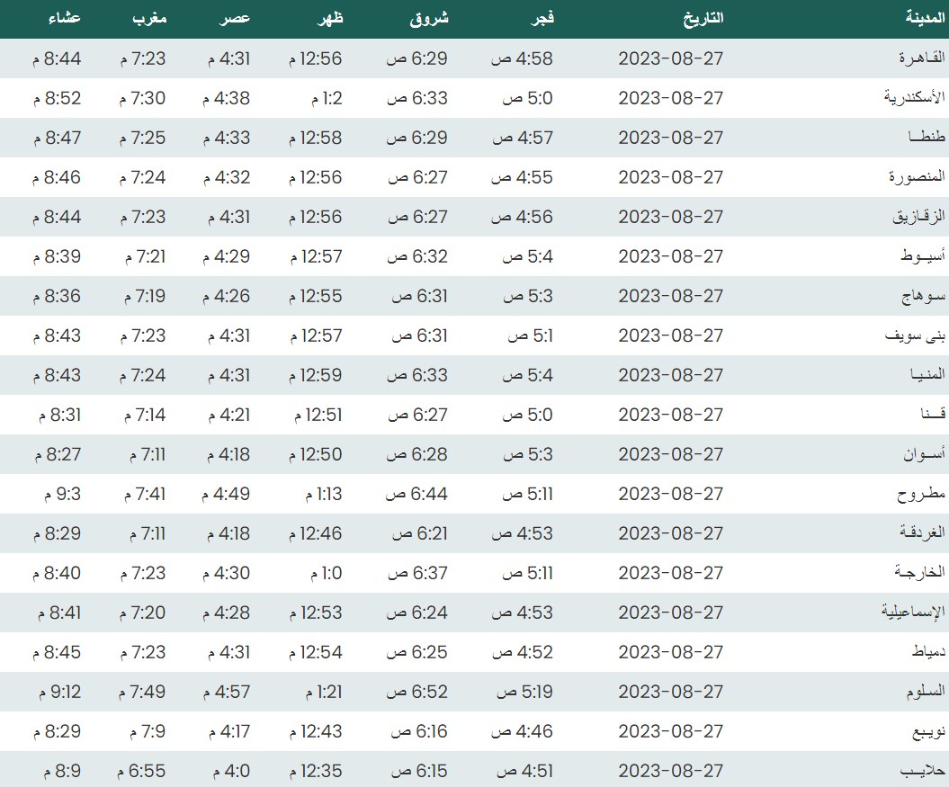مواقيت الصلاة اليوم بتوقيت القاهرة