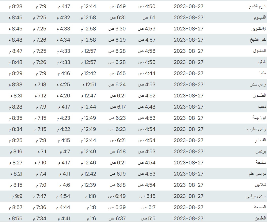 مواقيت الصلاة اليوم بتوقيت الإسكندرية