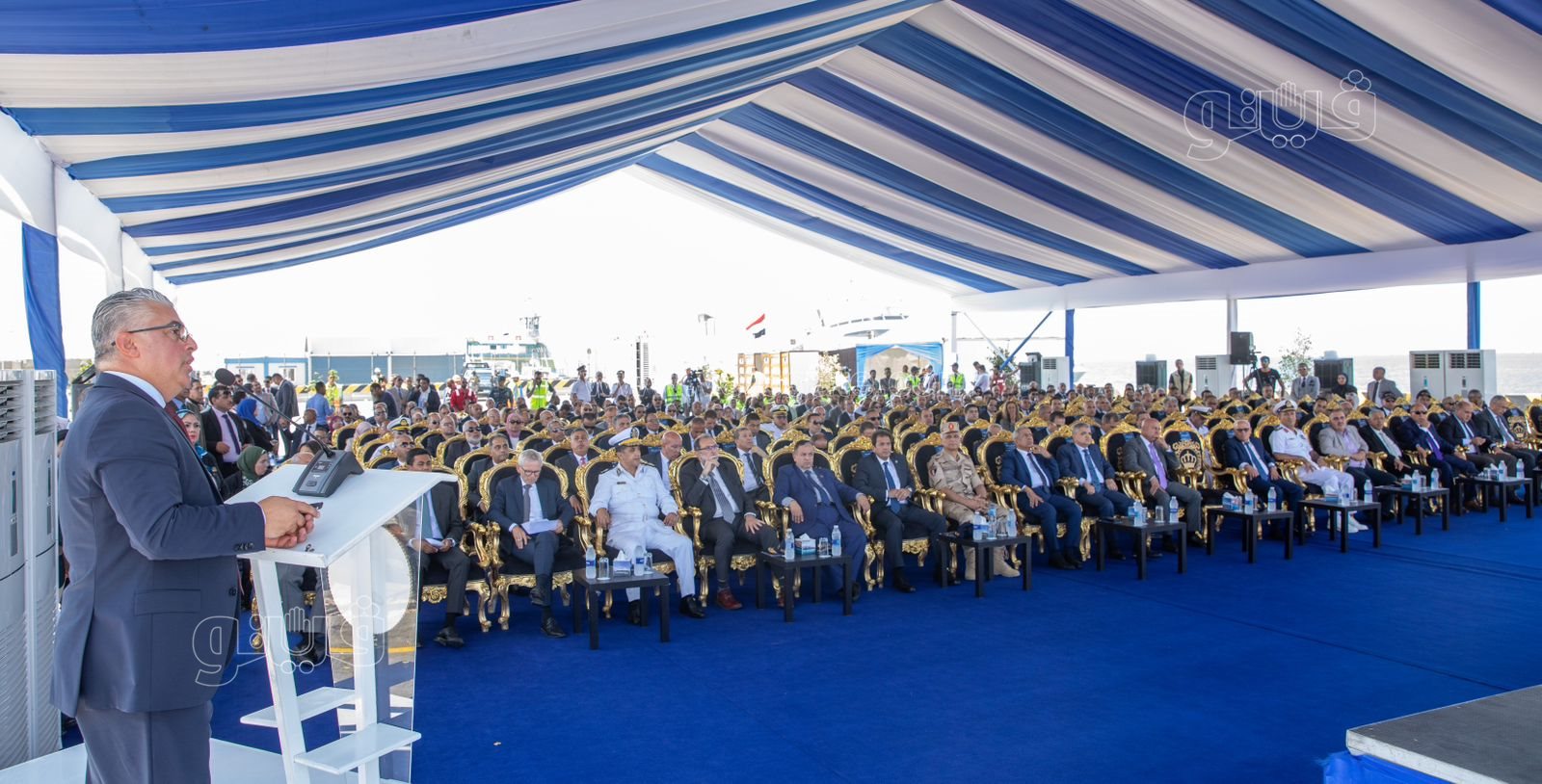 ورحب وليد جمال الدين رئيس الهيئة العامة للمنطقة الاقتصادية لقناة السويس أثناء الاحتفال خلال كلمته بالحضور جميعا وعلى رأسهم الفريق كامل الوزير، وزير النقل واللواء أركان حرب عادل الغضبان، محافظ بورسعيد والفريق أسامة ربيع، رئيس هيئة قناة السويس والفريق أشرف عطوة، قائد القوات البحرية.