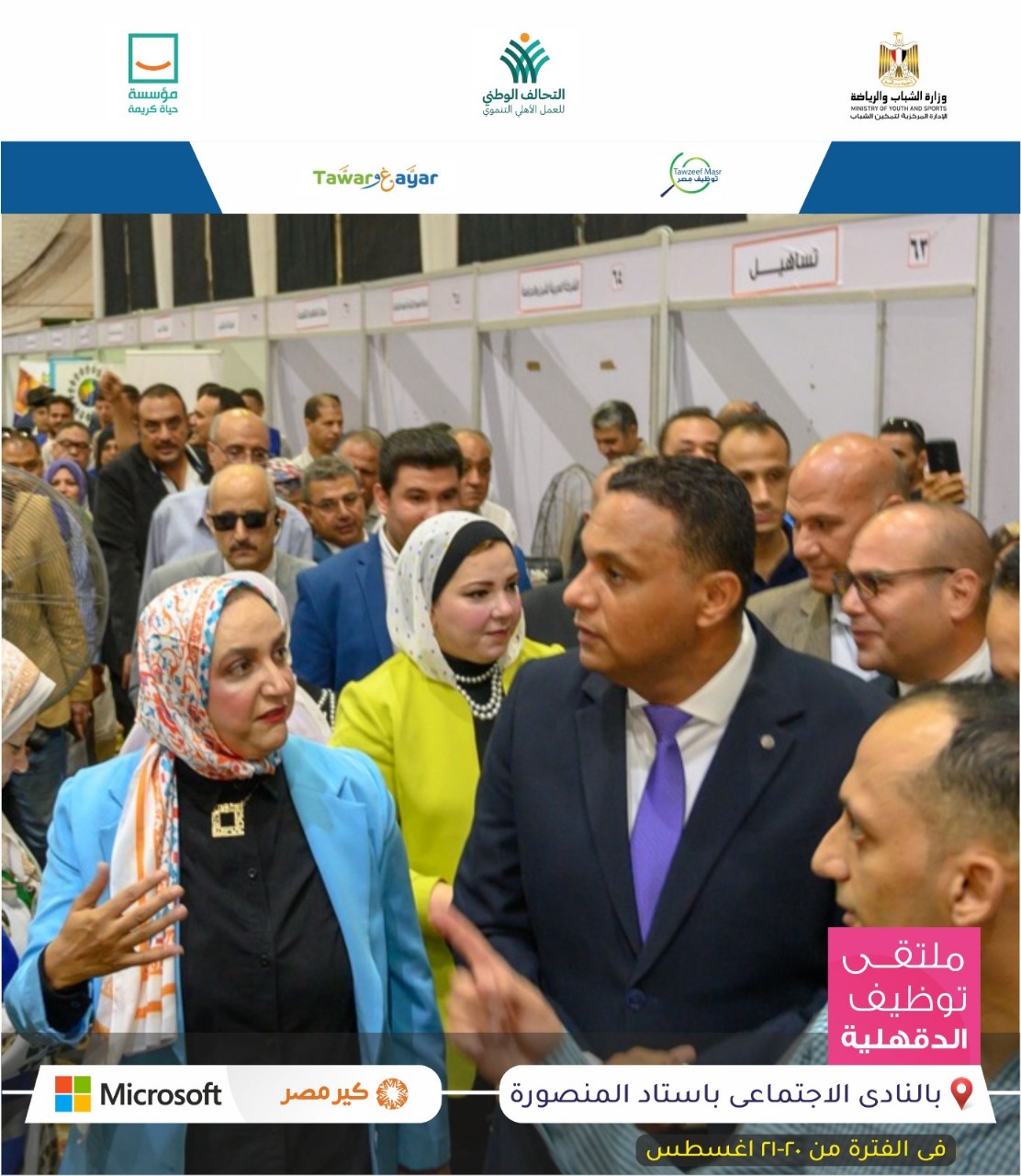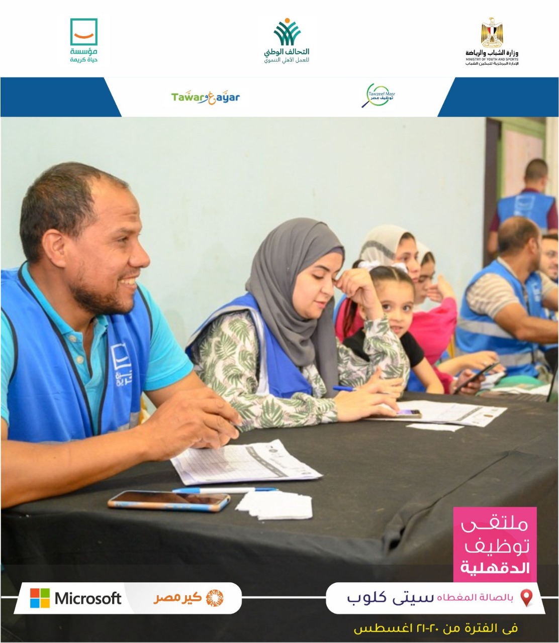نفذت وزارة الشباب والرياضة من خلال الإدارة المركزية لتمكين الشباب (الإدارة العامة للمبادرات الشبابية)، ومؤسسة حياة كريمة ملتقيات "توظيف مصر" بالدقهلية والقليوبية من خلال مبادرة "توظيف مصر"، ضمن فعاليات صيف شبابنا لتأهيل الشباب لسوق العمل، بمشاركة قرابة ٨ آلاف شاب وفتاة.