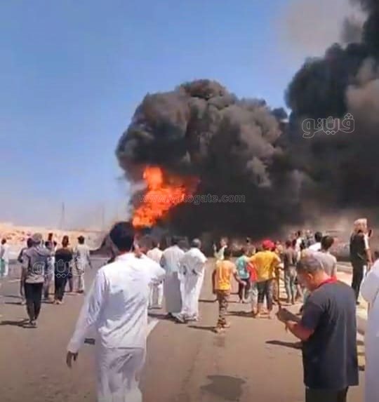 إصابة 3 أشخاص في اشتعال سيارة مواد بترولية بمطروح (صور)