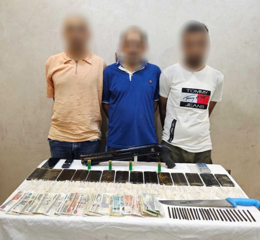 وعقب تقنين الإجراءات تم استهدافهم وأمكن ضبطهم حال تواجدهم بمسكن أحدهم بمحافظة المنوفية.. وبحوزتهم (كمية من مخدر الحشيش وزنت 3 كيلو جرامات – كمية من مخدر الهيروين - بندقية خرطوش - عدد من الطلقات مختلفة الأعيرة - سلاح أبيض "سنجة" - ميزان حساس).