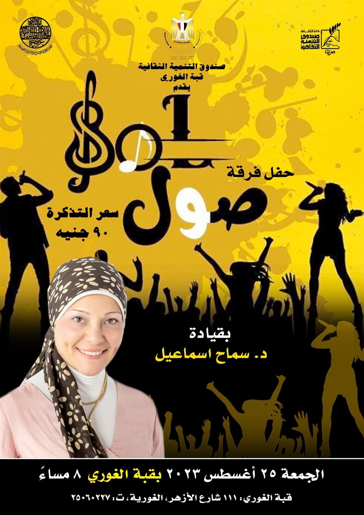 يقيم مركز إبداع قبة الغوري التابع لقطاع صندوق التنمية الثقافية في الثامنة من مساء الجمعة المقبل الموافق 25 أغسطس الجاري حفل غنائي لفرقة "صول".