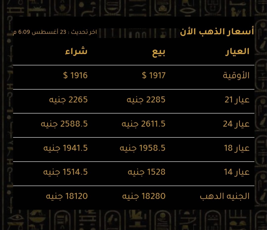 وجاءت أسعار الذهب اليوم الأربعاء كالتالي: