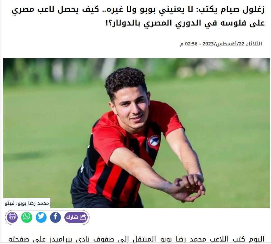وكانت “فيتو” نشرت مقالا للزميل زغلول صيام نائب رئيس التحرير ورئيس القسم الرياضي تحت عنوان:لا يعنيني بوبو ولا غيره.. كيف يحصل لاعب مصري على فلوسه في الدوري المصري بالدولار
