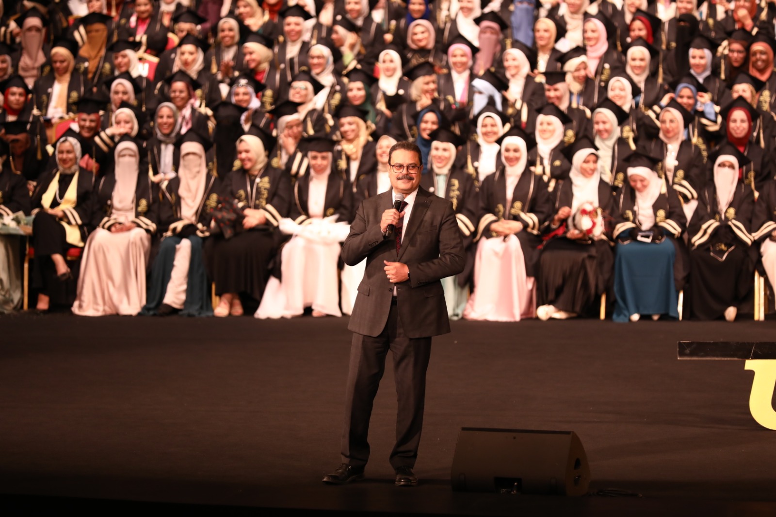 ووجه الشربيني نصائح لبناته الخريجات جاء فيها: أنتن صاحبات أشرف مهنة، حافظن على أسرار المرضى، فأنتن مؤتمنات عليهم، فكن على قدر الأمانة، وتسلحن بالعلم والمعرفة، وفي ختام كلمته وجه الشكر والتقدير إلى كلية طب البنات؛ لجهودها المثمرة مع هذه الدفعة.