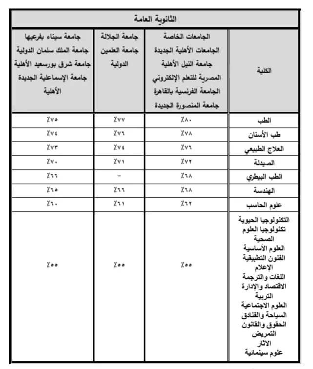 - تنسيق جامعة المنصورة الأهلية 2024 كلية التربية 53%.