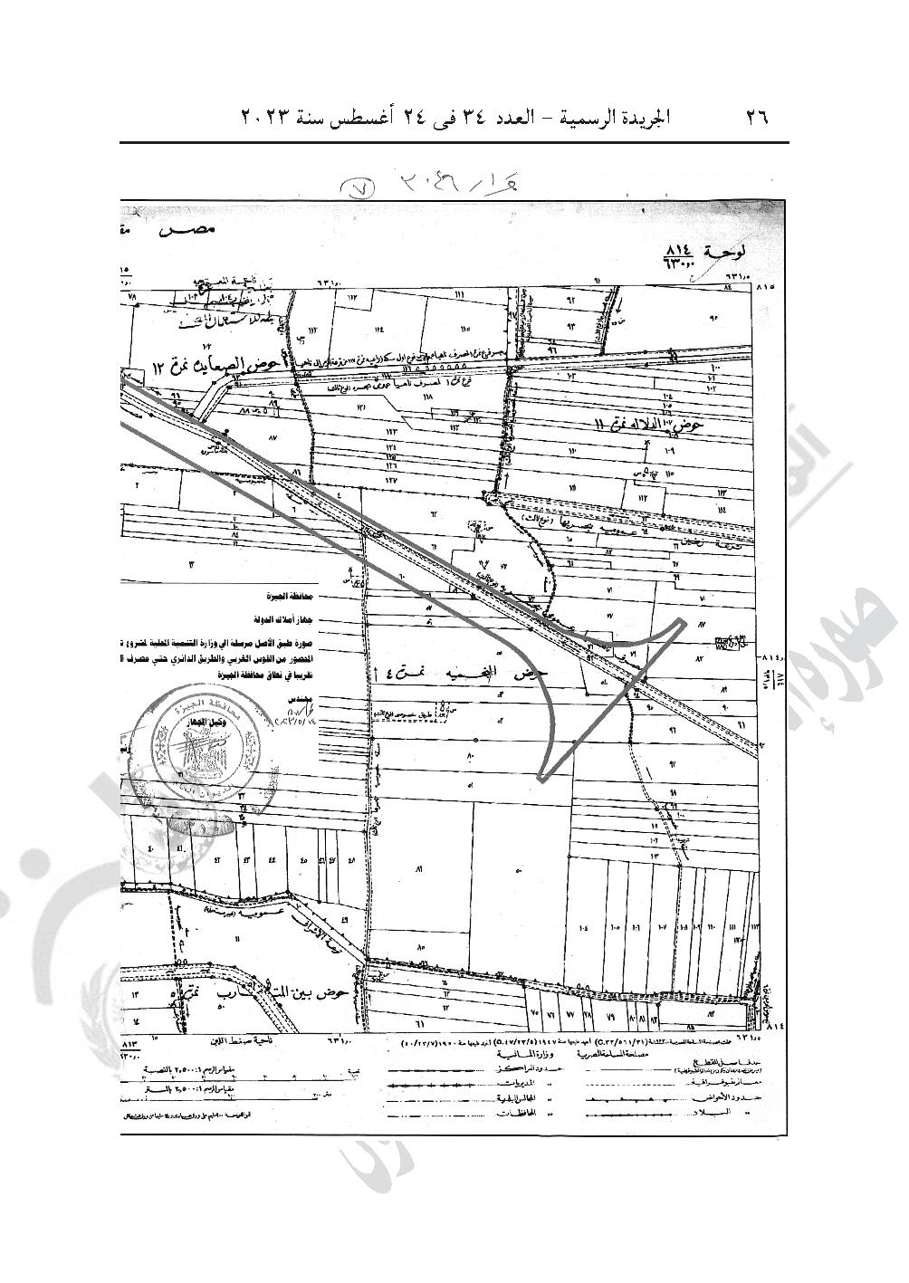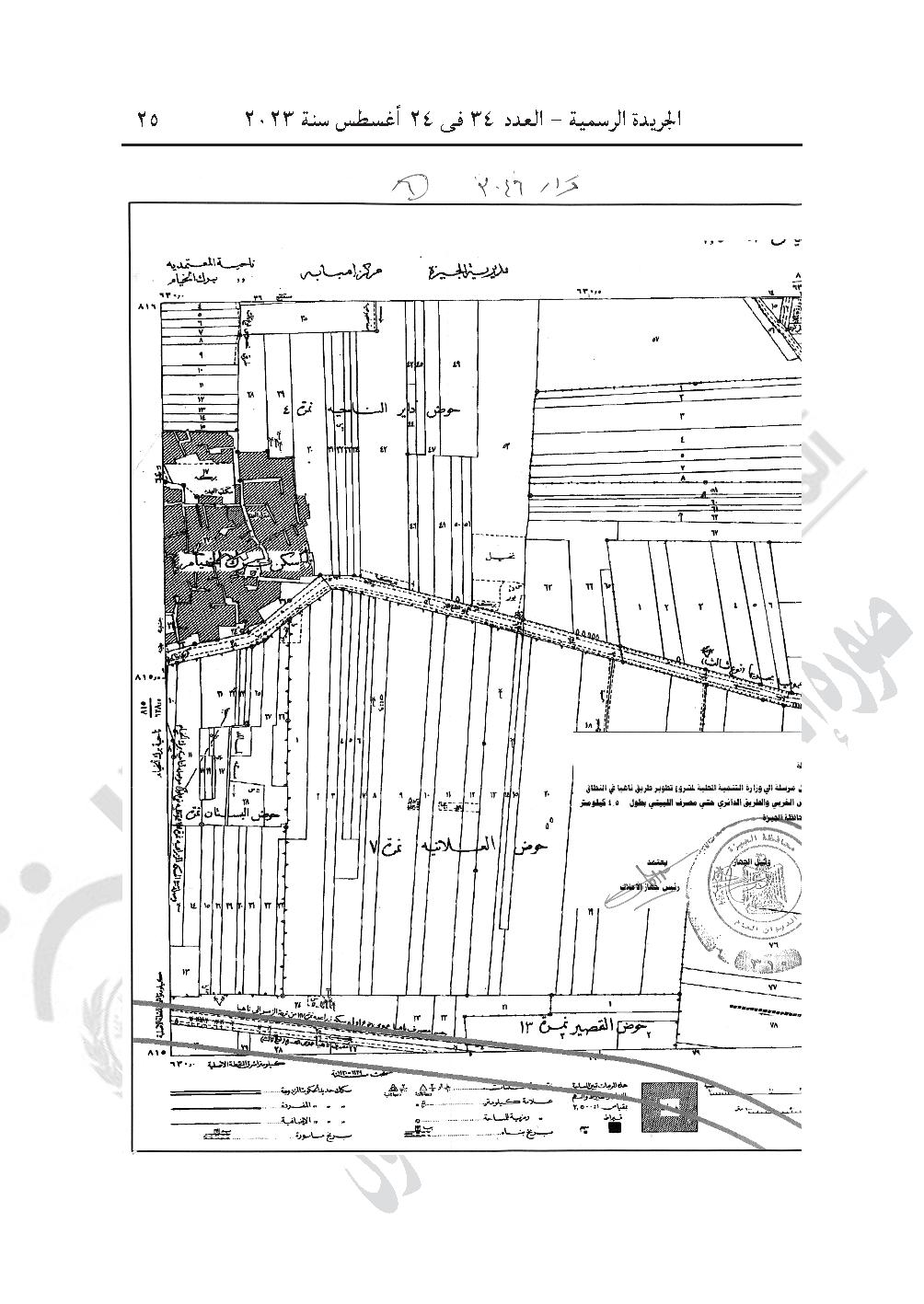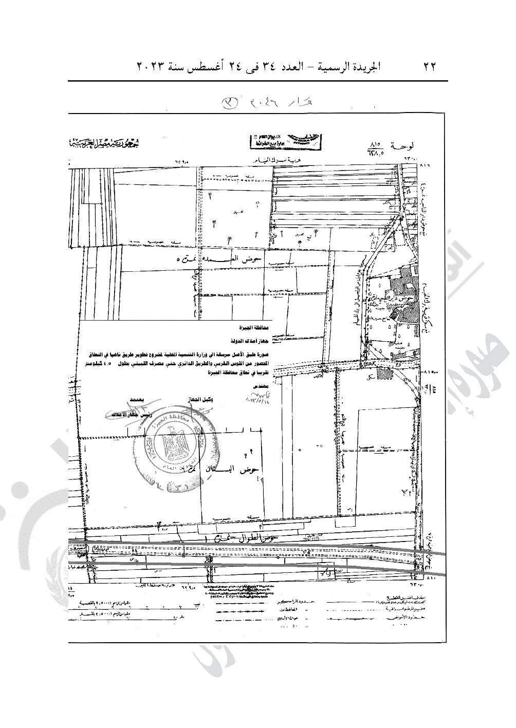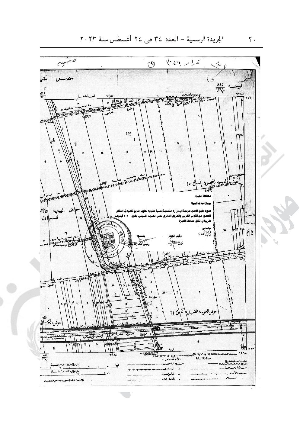 -قرار رئيس مجلس الوزراء رقـم 3046 لسنـة 2023، بشأن اعتبار مشروع تطوير طريق ناهيا فى النطاق المحصور من القوس الغربى للطريق الدائرى حتى مصرف اللبينى بطول (5.4) كم تقريبًا، لصالح محافظة الجيزة، من أعمال المنفعة العامة، وذلك على النحو الموضح بالمذكرة الإيضاحية والرسوم التخطيطية وكشوف الإحداثيات.