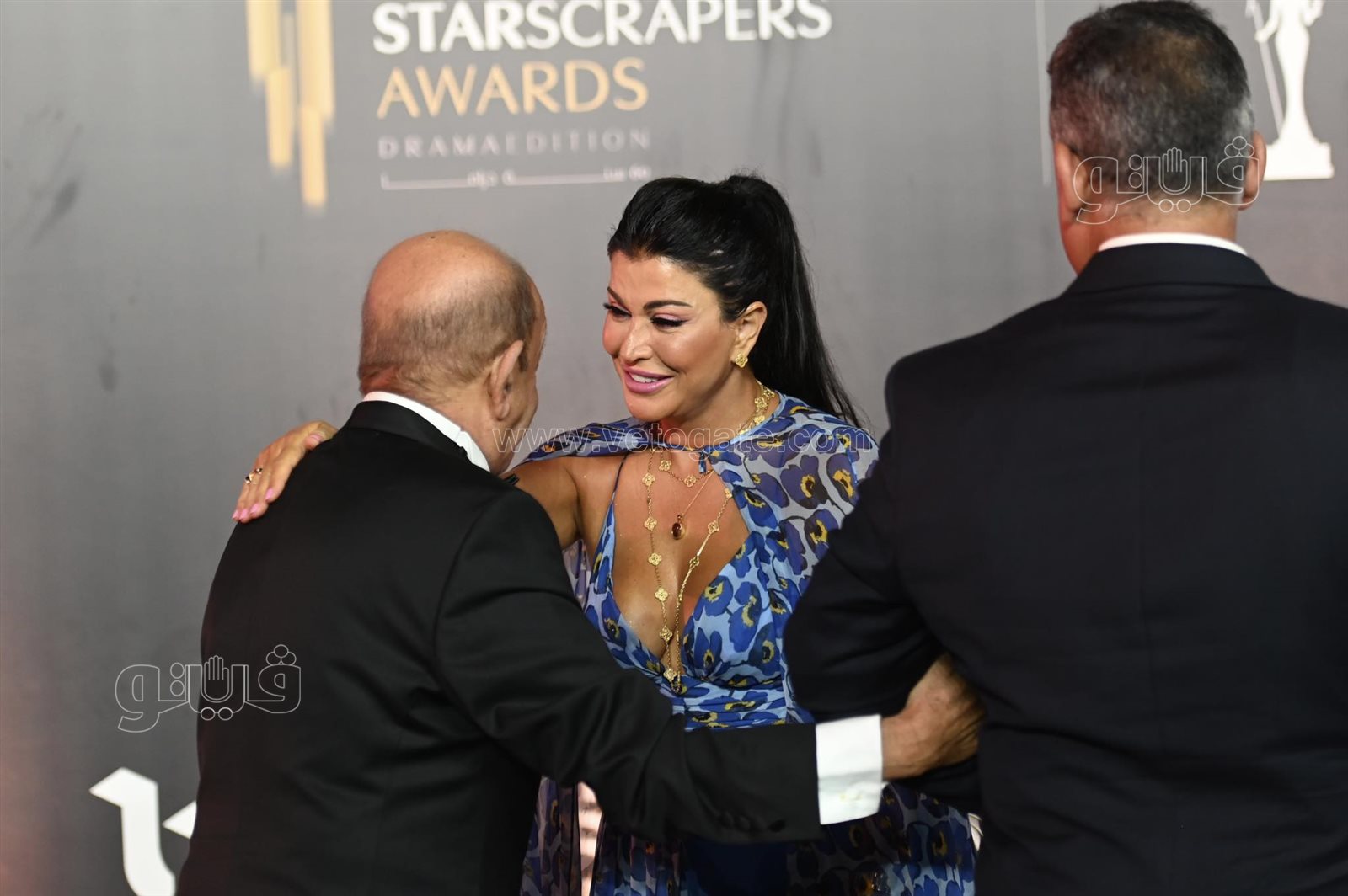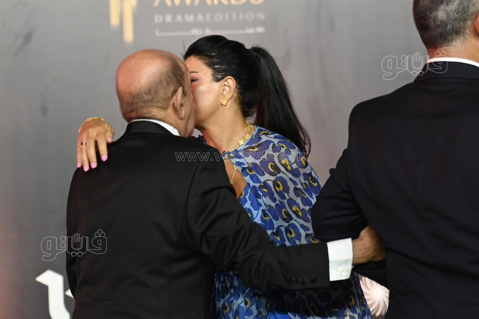 جومانا مراد تقبل لطفي لبيب في حفل مهرجان القاهرة للدراما
