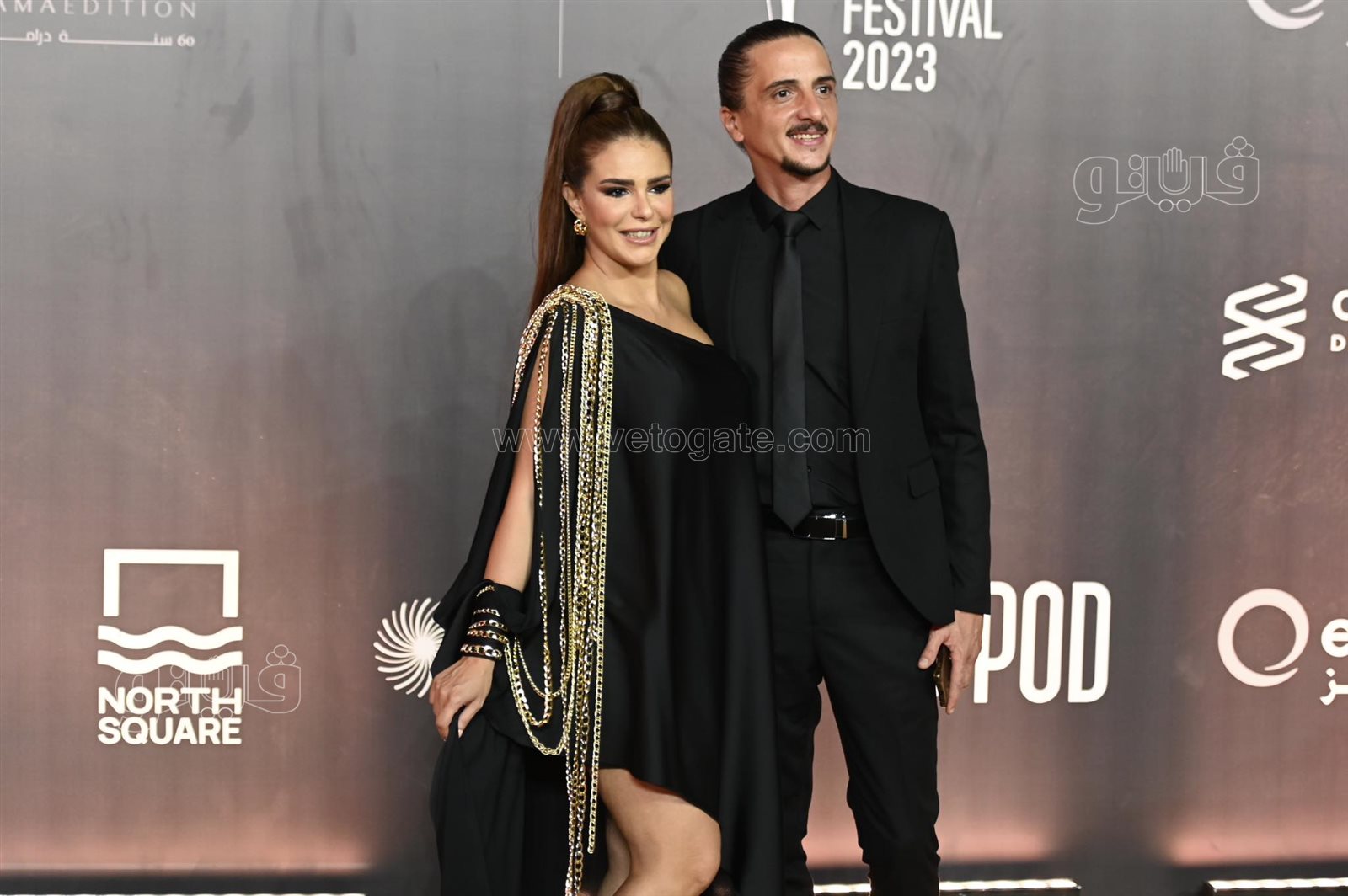 وحرص عدد من الفنانين أيضًا على التواجد على السجادة الحمراء للمهرجان على رأسهم الفنانة دنيا عبد العزيز التي اختارت اللون الأسود لإطلالتها.