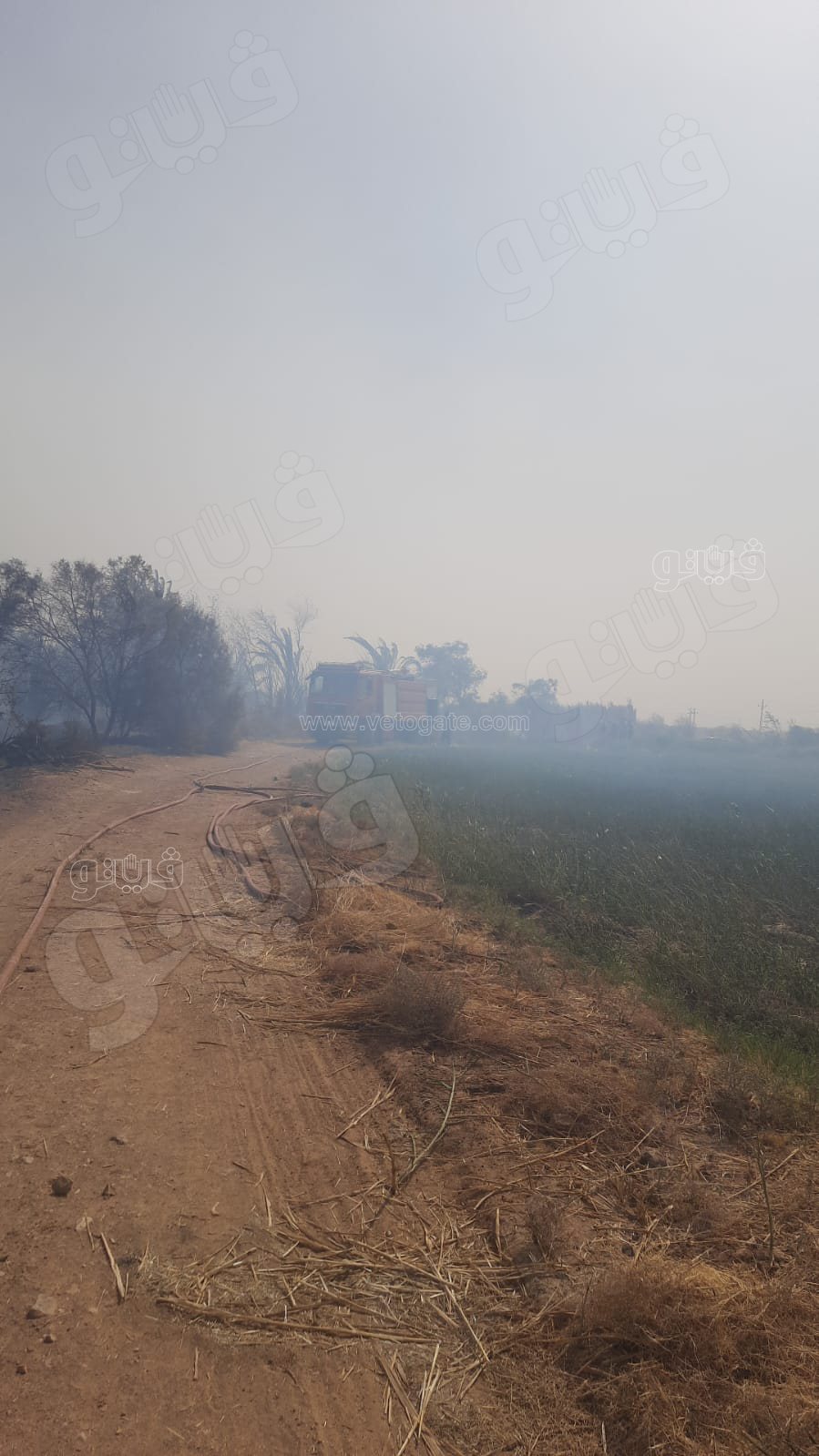 انتقلت سيارات الإطفاء لموقع الحريق، مع سيارات الوحدة المحلية للقرية والمركز لإخماد النيران بسبب صعوبة اخمادها في ظروف حالة الطقس السيء الذي تتعرض لها المحافظة متمثلة في عواصف ترابية تجتاح أرجاء الوادي الجديد بالكامل.