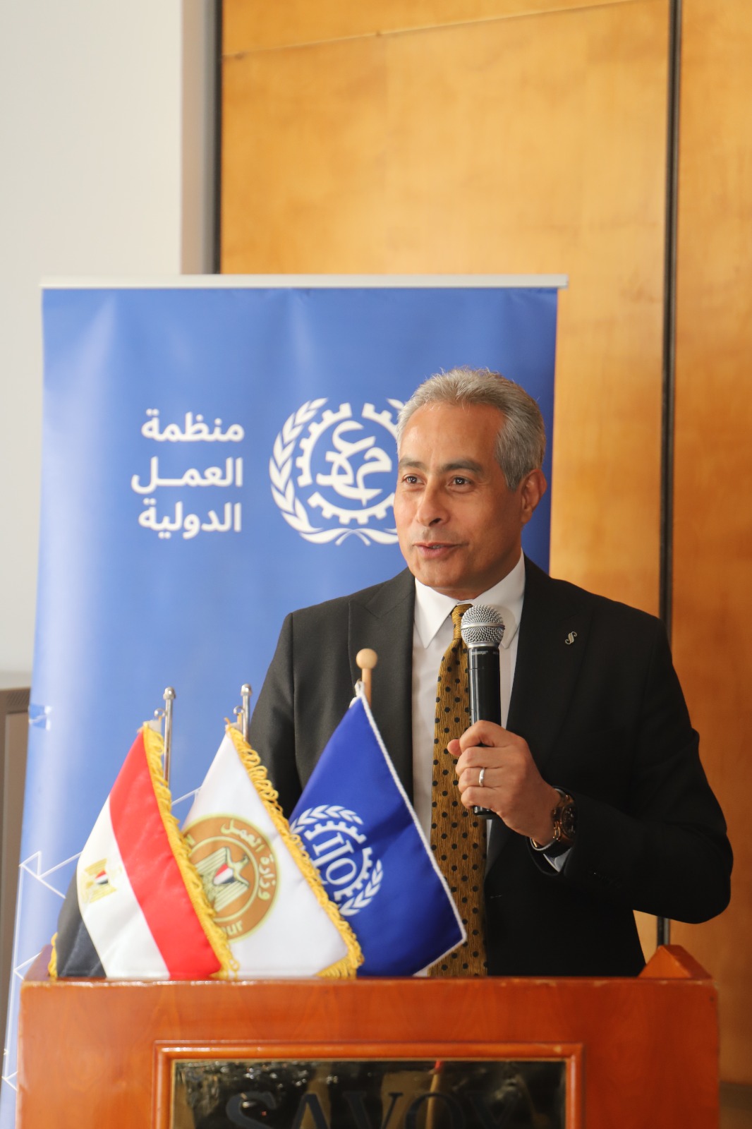 من جانبه قدم إيريك أوشلان مدير مكتب منظمة العمل الدولية بالقاهرة، الشكر والتقدير لمحافظ جنوب سيناء على حسن الاستقبال والإستضافة، وهنأ وزير العمل على تغيير اسم الوزارة الي "وزارة العمل" بدلًا من "القوى العاملة"، مؤكدًا الشراكة الناجحة بين المنظمة والوزارة في العديد من الأنشطة والبرامج والمشروعات بإعتبارها الجهة المتخصصة في العمل في الدولة المصرية، ومشيرًا إلى أن منظمة العمل الدولية تأسست في عام 1919 بعد الحرب العالمية الأولى، بهدف تحسين وضع العمال، كما انضمت للأمم المتحدة بعد الحرب العالمية الثانية باعتبارها منظمة ثلاثية التشكيل والعضوية تمثل فيها الدول من الحكومات ومنظمات أصحاب الأعمال والعمال وتناقش جميع أمورها من قبل الأطراف الثلاث، وقد استحدثت المنظمة معايير للعمل الدولية بإعتبارها منظمة معيارية تضع القوانين والاتفاقيات والتوصيات هذه الوثائق هي الأساس في عمل المنظمة.