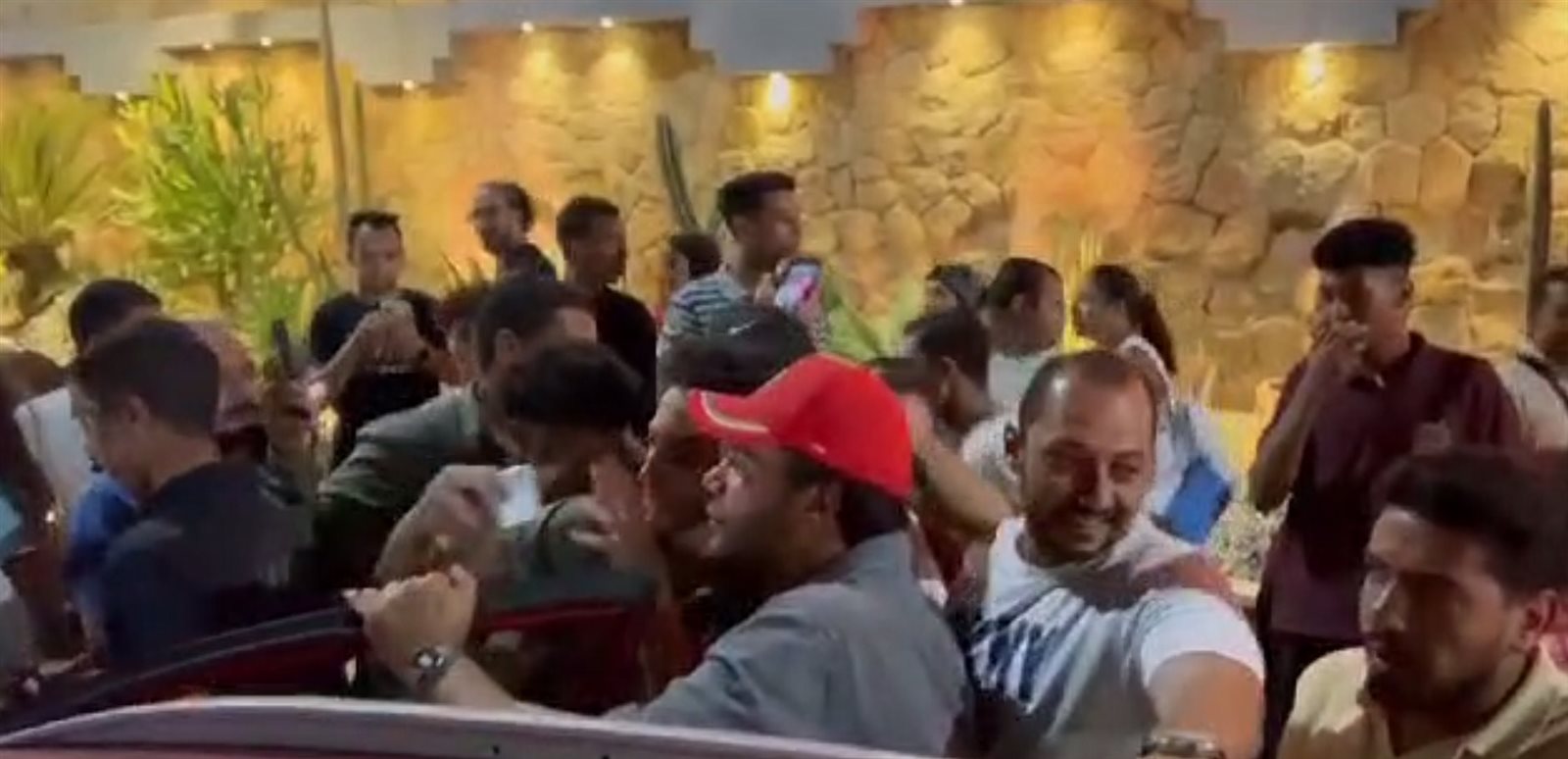 محمد إمام يتسبب في إغلاق الشارع بسبب تدافع الجمهور عليه أثناء تصويره فيلم الأستاذ