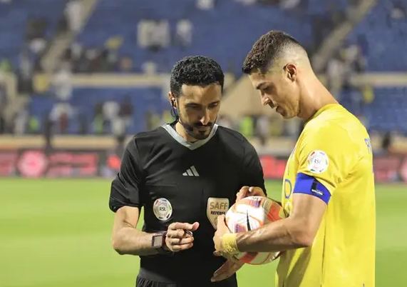 وحصل رونالدو على كرة الهاتريك من الحكم عبد الله الحربي بعد توقيع الأخير عليها، قبل أن يلتقط "الدون" عدة صور مع الكرة.