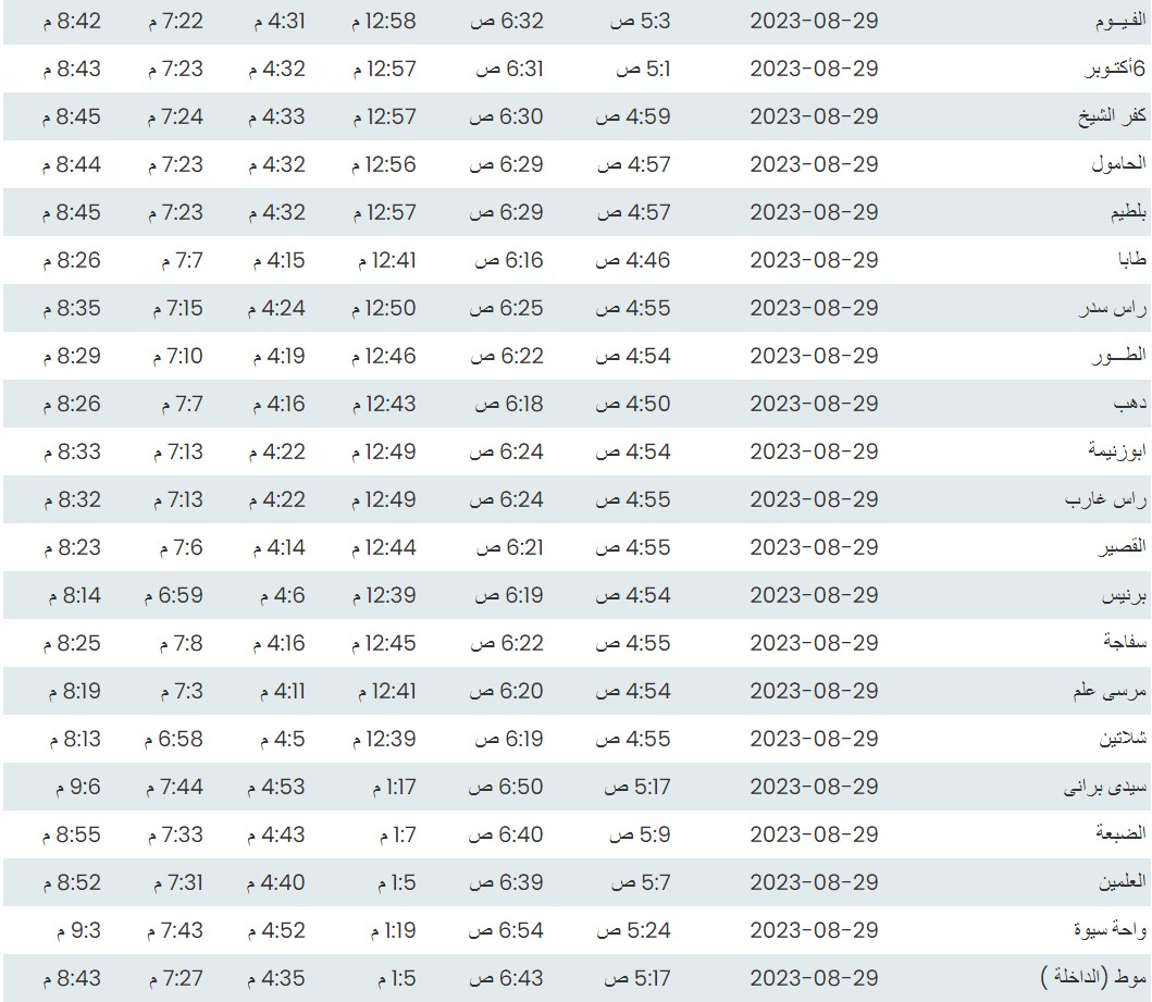 مواقيت الصلاة اليوم بتوقيت أسيوط