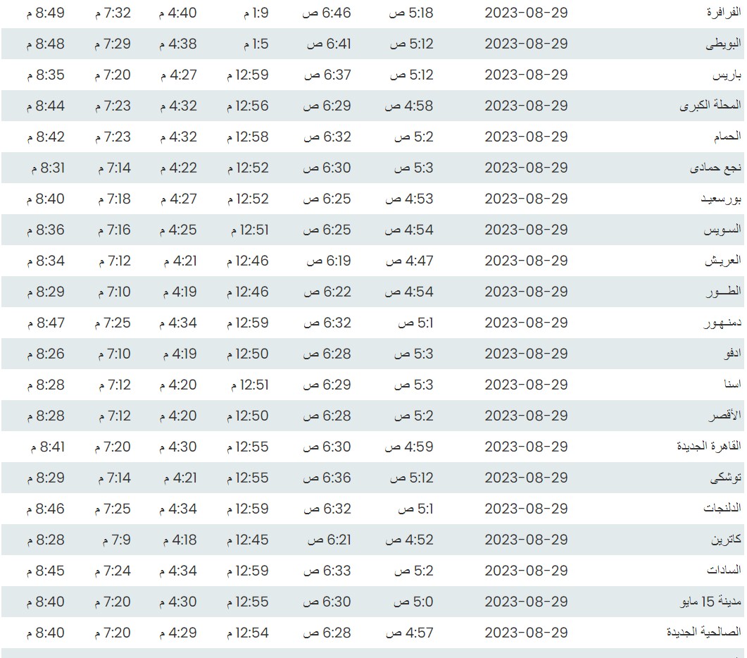 مواقيت الصلاة اليوم بتوقيت القاهرة