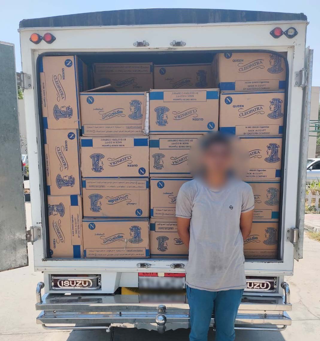 تمكنت الأجهزة الأمنية بمديرية أمن القاهرة من ضبط (سائق - مقيم محافظة المنيا) حال قيادته سيارة نقل بدائرة قسم شرطة التجمع الأول، وبحوزته (١٠٠ كرتونة بداخلهم 50 ألف علبة سجائر "جميعها بدون مستندات ومجهولة المصدر").