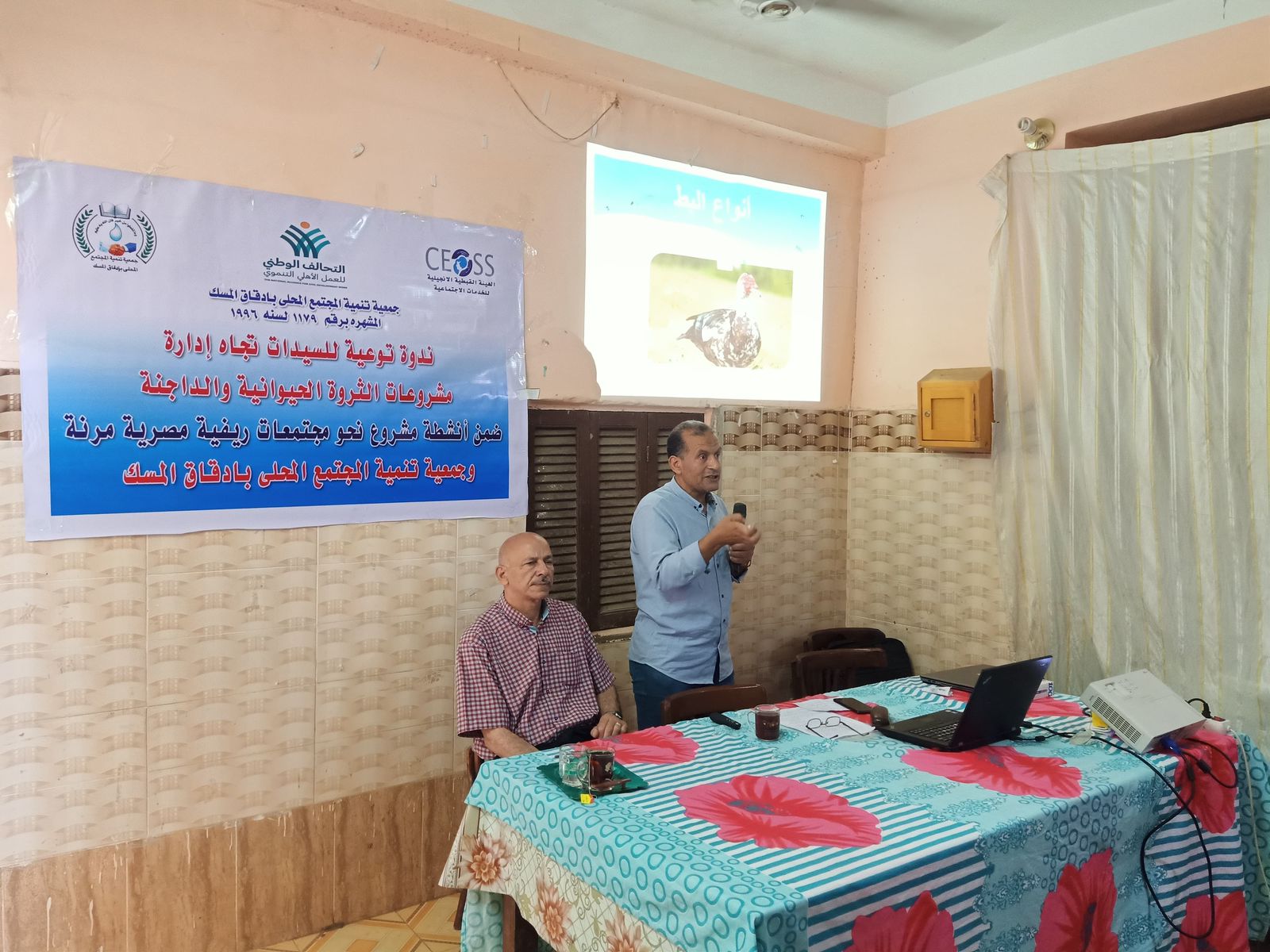 و فى نفس السياق نظمت الهيئة ندوة تعريفية لسيدات قرية ادقاق المسك بمحافظة المنيا لتوعيتهم بطرق تربية الطيور والدواجن وكيفية التعامل مع الأمراض الموسمية التي تصيبها.