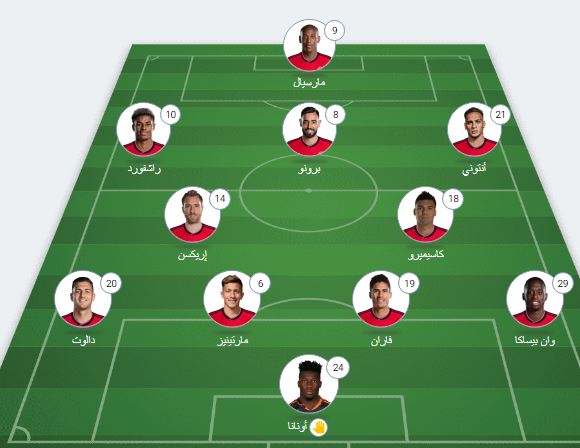 وجاء تشكيل مانشستر يونايتد علي النحو التالي: