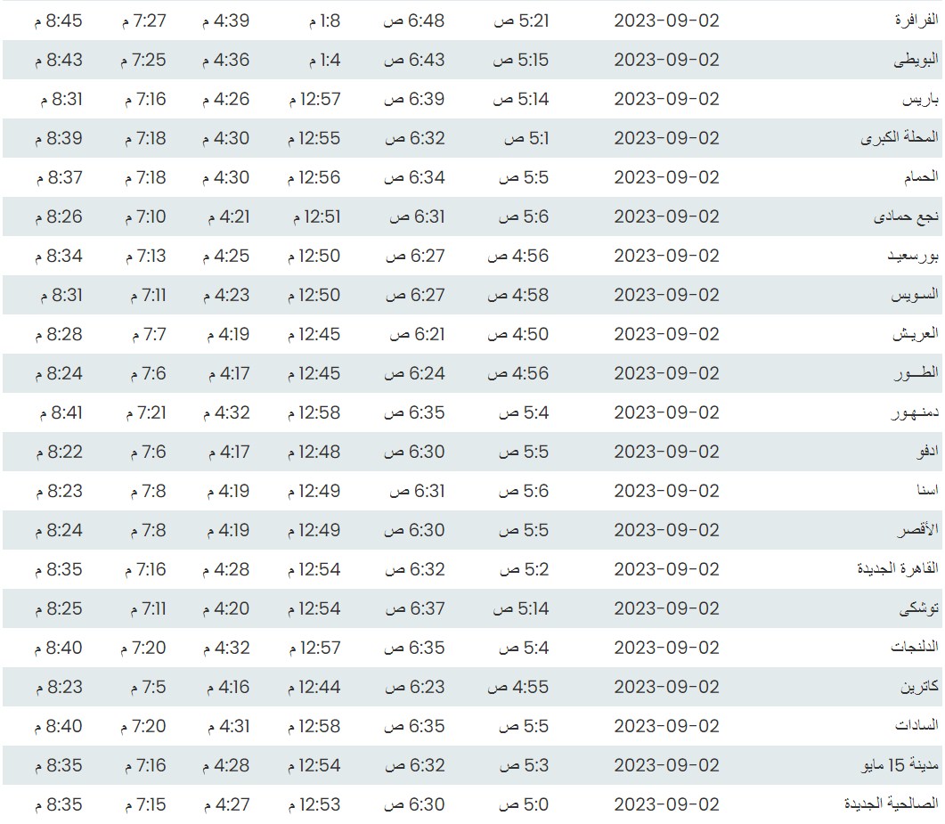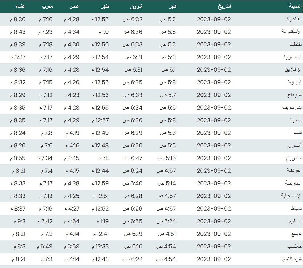 مواقيت الصلاة اليوم بتوقيت القاهرة