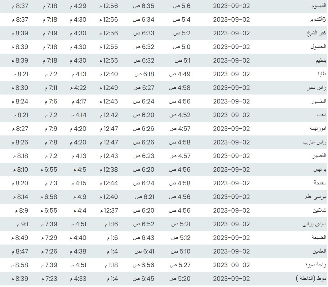 مواقيت الصلاة اليوم بتوقيت أسيوط