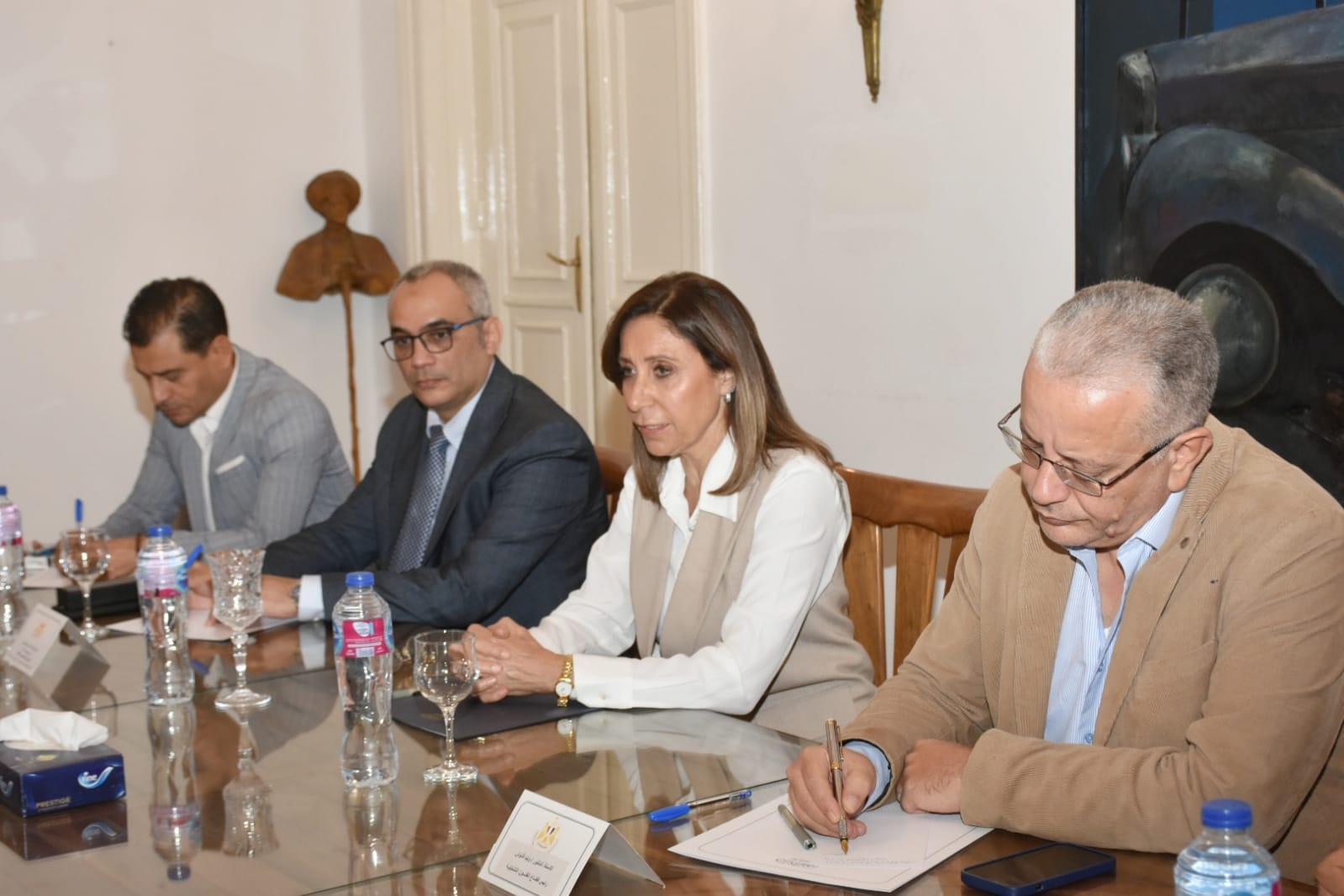 اجتمعت الدكتورة نيفين الكيلاني وزيرة الثقافة، ووفد مبادرة "إسناد السودانيين المتأثرين بالحرب"، برئاسة الدكتور عصام شرف رئيس الوزراء الأسبق، وضم الوفد: أميرة الفاضل محمد، وزير الرعاية والتنمية الاجتماعية الأسبق بالسودان، مستشار المدير العام للإيسيسكو للشركات والتعاون الدولي، وعلي المهدي، الأمين العام للهيئة الدولية للمسرح، سفير السلام باليونسكو، والدكتور مرتضى علي عثمان، المستشار الثقافي لسفارة جمهورية السودان بالقاهرة، وذلك بحضور الدكتور وليد قانوش، رئيس قطاع الفنون التشكيلية، القائم بأعمال قطاع صندوق التنمية الثقافية، والمخرج هشام عطوة، مستشار وزير الثقافة للشؤون الفنية، وعمرو البسيوني، رئيس الهيئة العامة لقصور الثقافة.