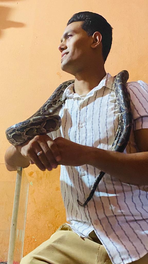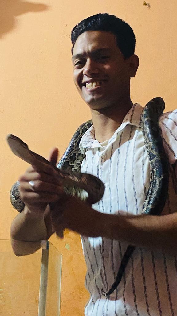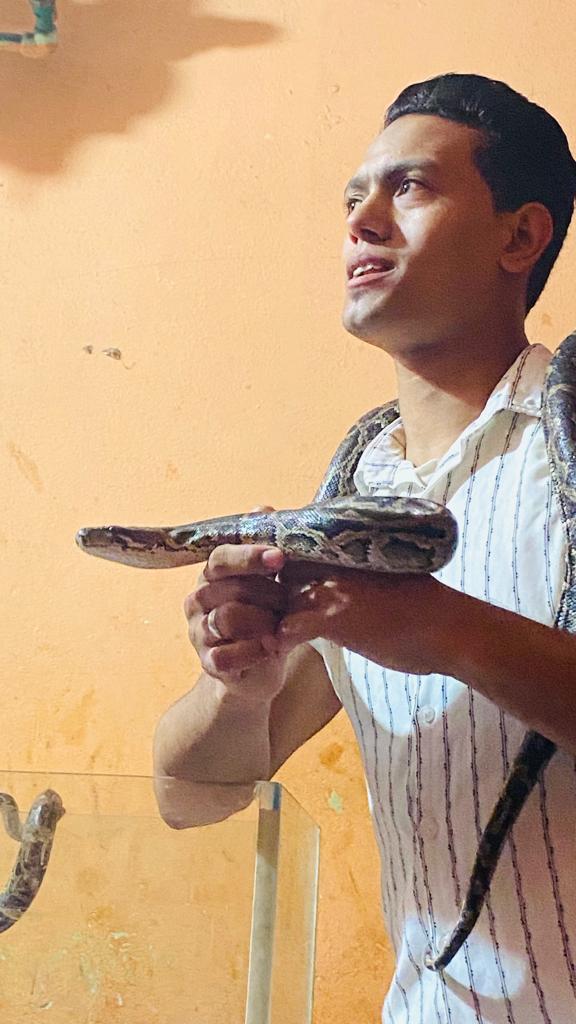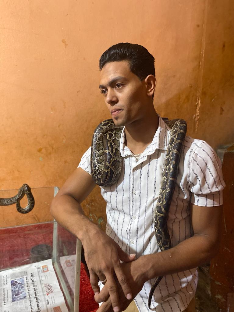 ظل الشاب العشريني يحلم منذ أن وعى للحياة بتربية الثعابين الحقيقية في منزله، الأمر الذي جعله يمارس اللعب مع أصدقائه منذ طفولته بالثعابين البلاستيكية.