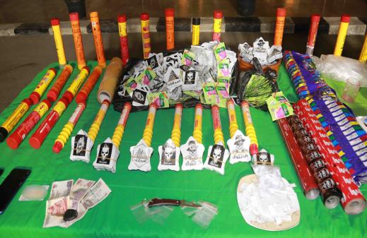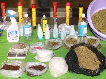 وعقب تقنين الإجراءات تم ضبطهما وبحوزتهما(كمية لمخدر الإستروكس وزنت 6 كيلو جرامات – كمية لمخدر الشادو وزنت 2 كيلو جرام – كمية لمخدر البودر وزنت كيلو جرام –أدوات ومعدات التصنيع –عدد 36 قطعة سلاح نارى "براشوت" - سيارة – سلاح أبيض - مبلغ مالى).