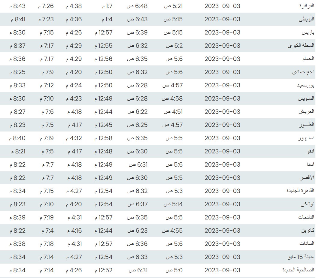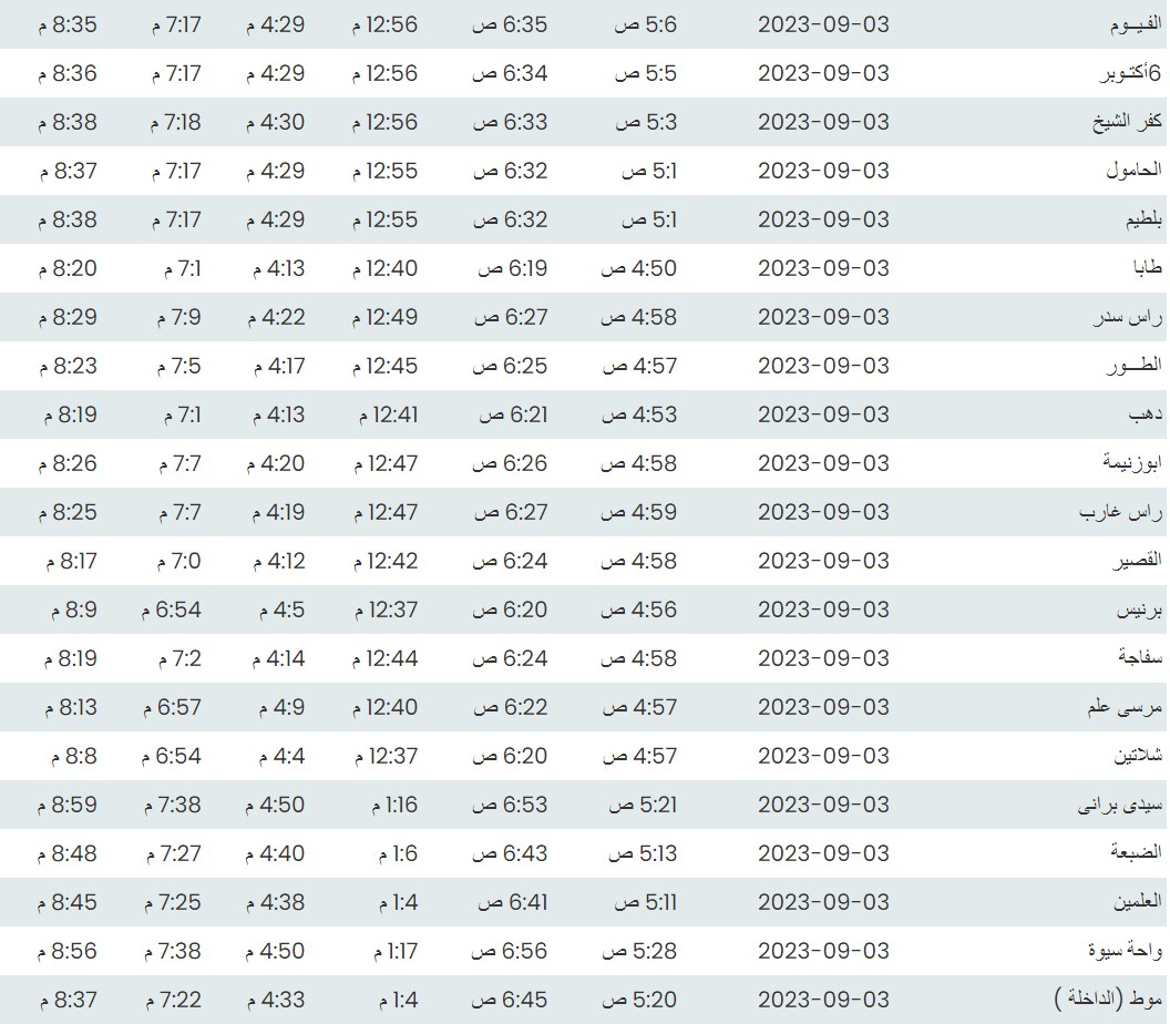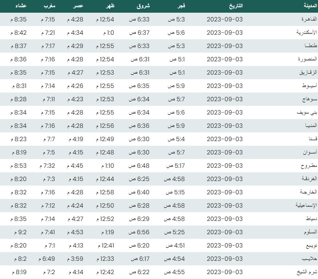مواقيت الصلاة اليوم بتوقيت القاهرة