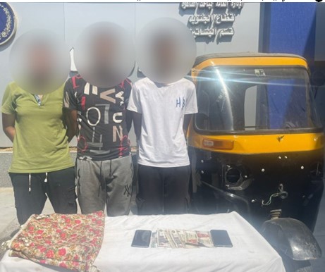 ضبط شخصين حال استقلالهما مركبة "توك توك" بدائرة قسم شرطة البساتين، وبحوزتهما حقيبة يد بداخلها (هاتف محمول - مبلغ مالى- كمية من الأوراق والمفاتيح) مجهولين المصدر، وبمناقشتهما اعترفا بسرقتها من أحد الأشخاص بأسلوب "الخطف".
