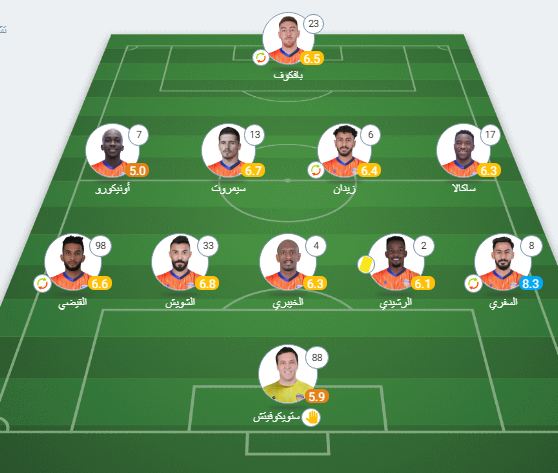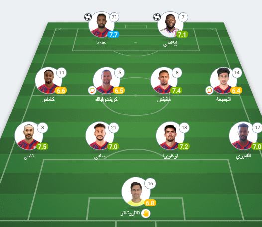 خط الوسط: الجميعة، ماتيتش، كريتشوفياك، كامانو