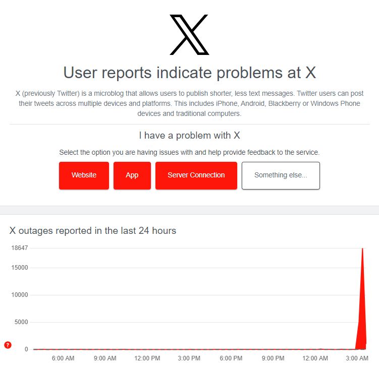 ووصل عدد المبلغين على شكاوى في تصفح منصة إكس عند الثالثة صباحًا إلى أكثر من 18 ألف شخص.