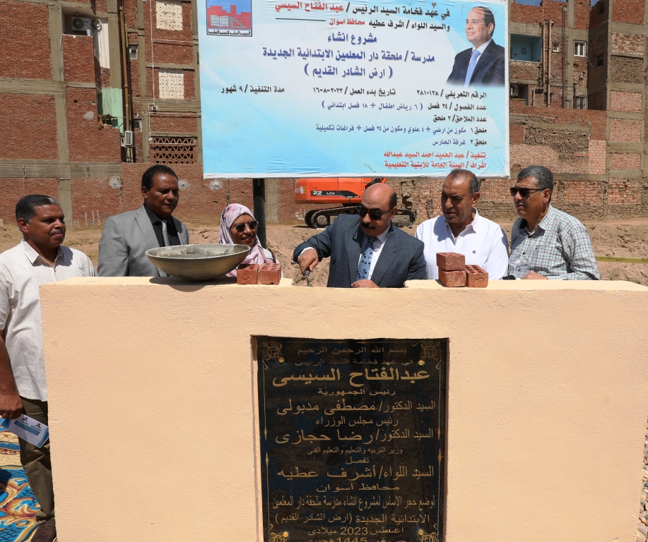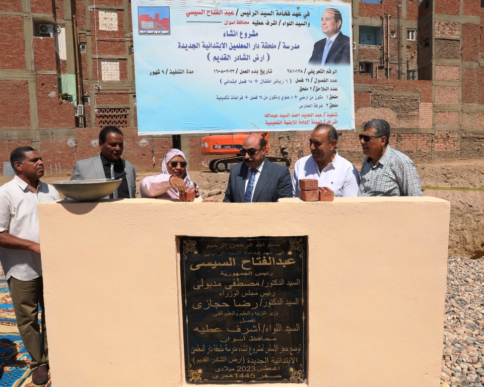 بعد 20 عامًا، محافظ أسوان يضع حجر الأساس لإنشاء مدرسة ملحقة بدار المعلمين الابتدائية (صور)