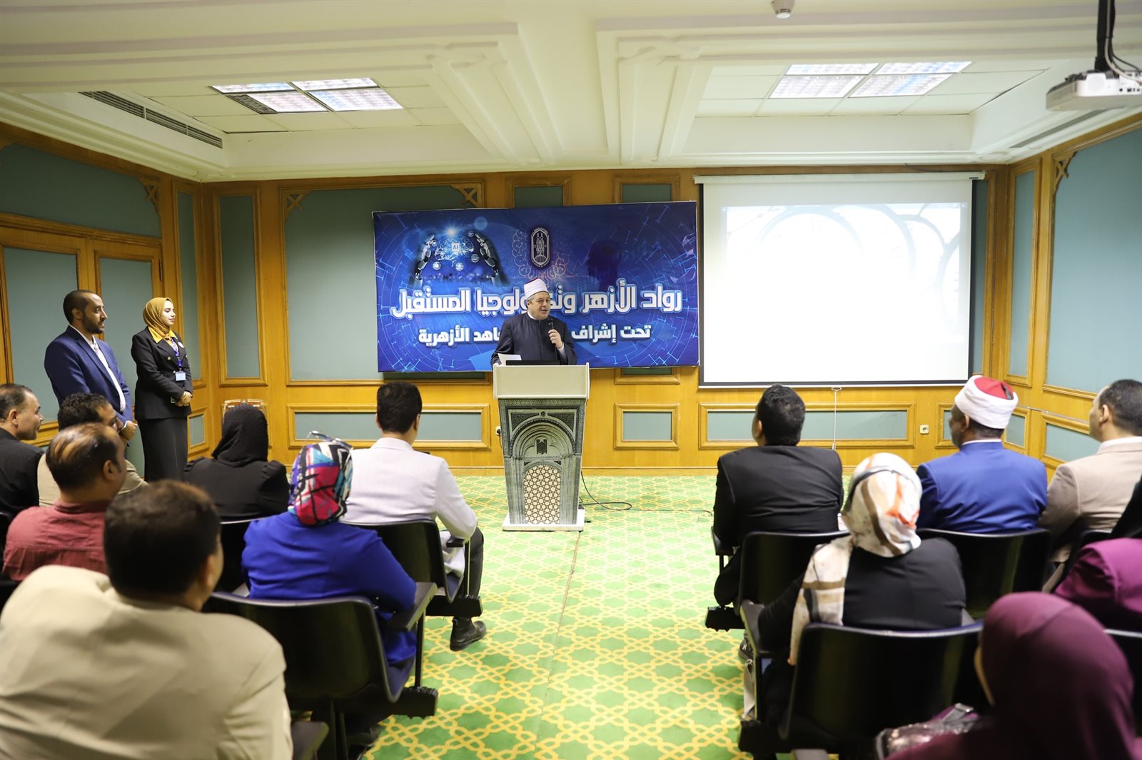 حيث افتتح الشيخ أيمن عبد الغني رئيس قطاع المعاهد الأزهرية ورشة العمل الخاصة بالمشروع، حضر الورشة الدكتور إبراهيم نصار رئيس قسم الكهرباء بكلية الهندسة جامعة الأزهر ورئيس اللجنة الاستشارية بالأزهر الشريف، والدكتور علي السمري رئيس قسم الحاسبات وعضو اللجنة الاستشارية والدكتور سيد عضو اللجنة الاستشارية، وعدد من المتخصصين في مجال الكمبيوتر والذكاء الاصطناعي.