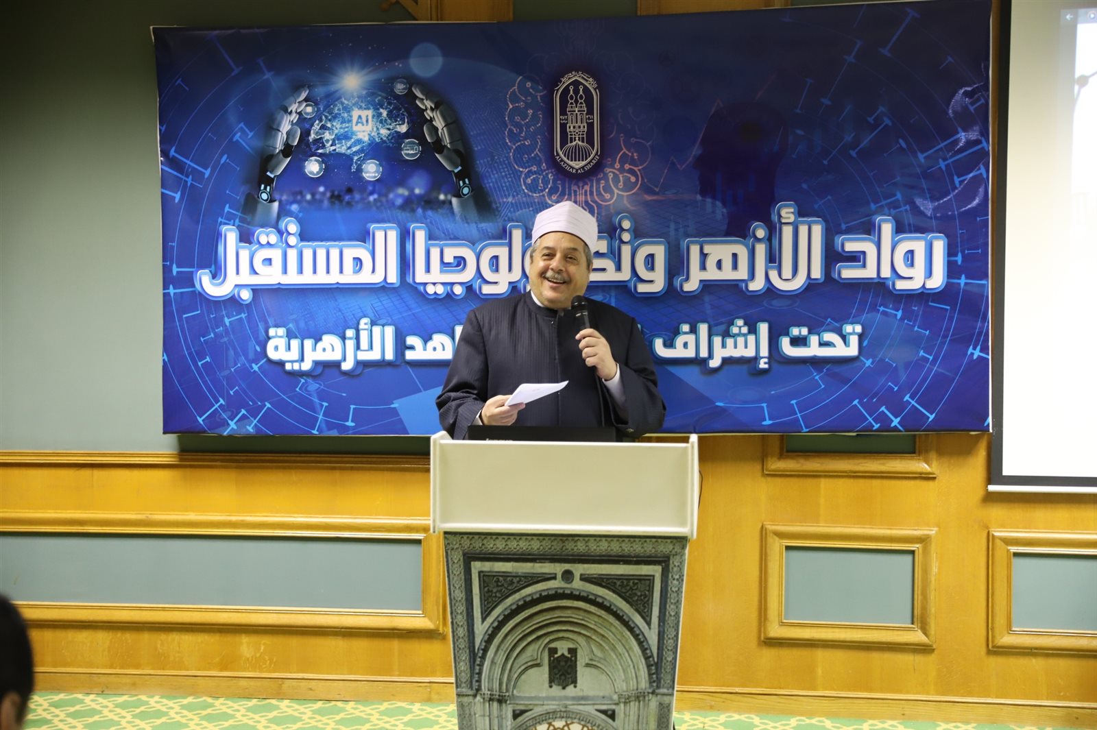 ومن جانبه أكد أ.د أحمد الشرقاوي وكيل قطاع المعاهد الأزهرية لشئون التعليم أن قطاع المعاهد الأزهرية يبدء في مشروع رواد الأزهر وتكنولوجيا المستقبل، وفيه يتم إعداد وتدريب مجموعة من الطلاب الأزهرية في فئات عمرية مختلفة على البرمجة، وتصميم بيئات ثلاثية الأبعاد، وتكون البداية التجريبية للمشروع بمنطقة القاهرة الأزهرية بحيث يتم تأهيل عدد (٦٠) طالبا أزهريا، حيث يتناول المشروع الاتجاهات التكنولوجية الحديثة والاستفادة من الذكاء الاصطناعي في تنمية مهارات الطلاب بشكل فريد، وتأهيلهم لسوق العمل في وقت مبكر