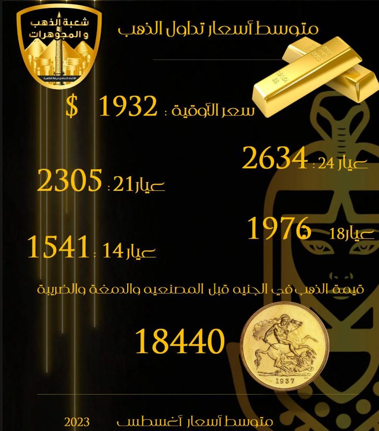 شعبة الذهب تعلن متوسط أسعار الذهب خلال شهر أغسطس