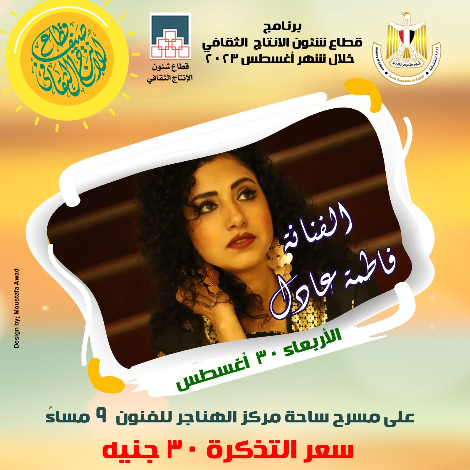 أما الجزء الثانى من الحفل، فتشدو فيه الفنانة فاطمة عادل وفرقتها الموسيقية، بباقة متنوعة من أشهر الأغانى لنحوم الطرب، بجانب أغانى من السيرة الهلالية.