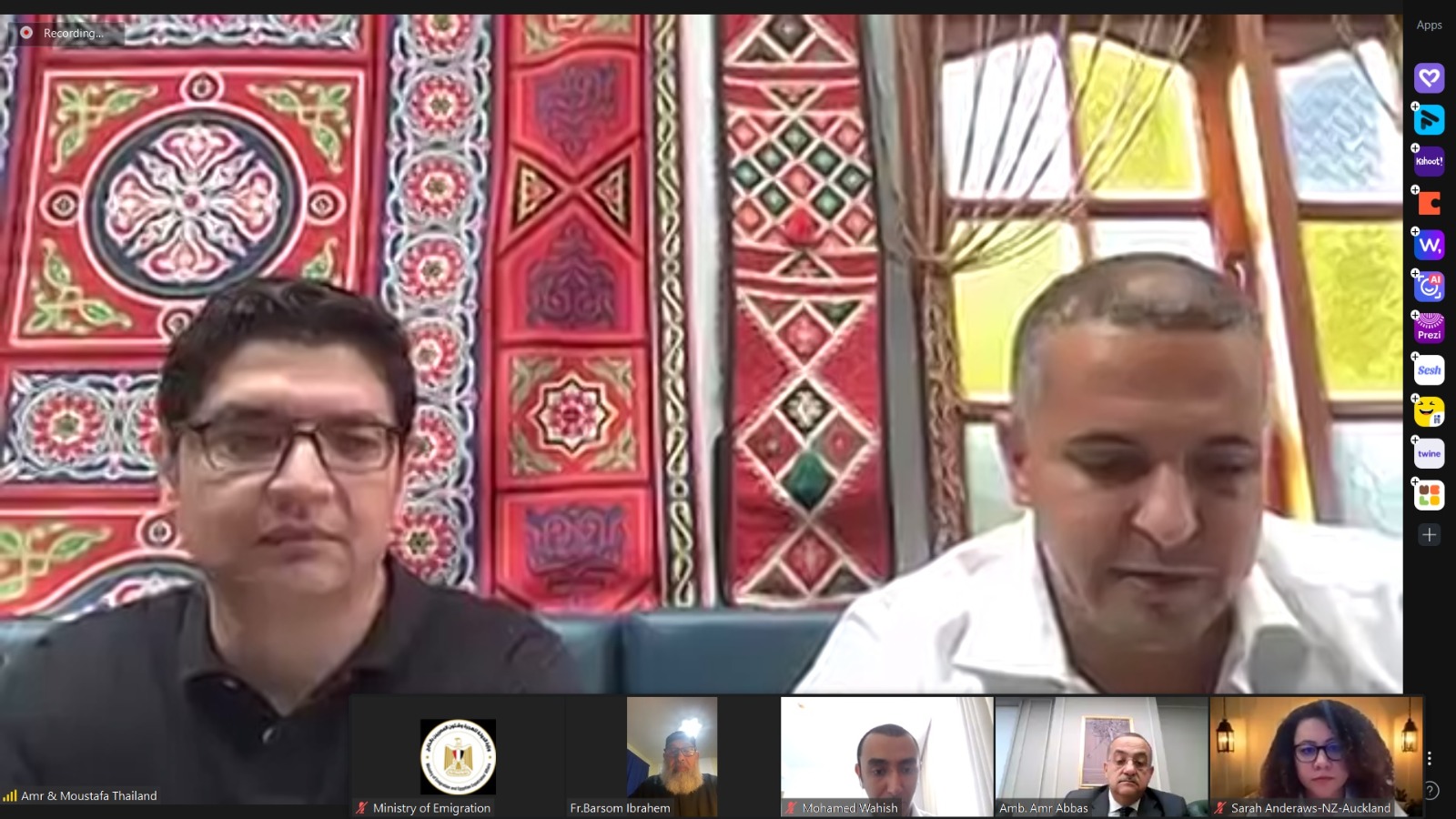 واستعرض المصريون في نيوزيلندا وسنغافورة وتايلاند أهمية المبادرة الرئاسية "اتكلم عربي" ودورها لربط المصريين بالخارج من أبناء الجيلين الثاني والثالث بعاداتنا وتقاليدنا وهويتنا المصرية الأصيلة.