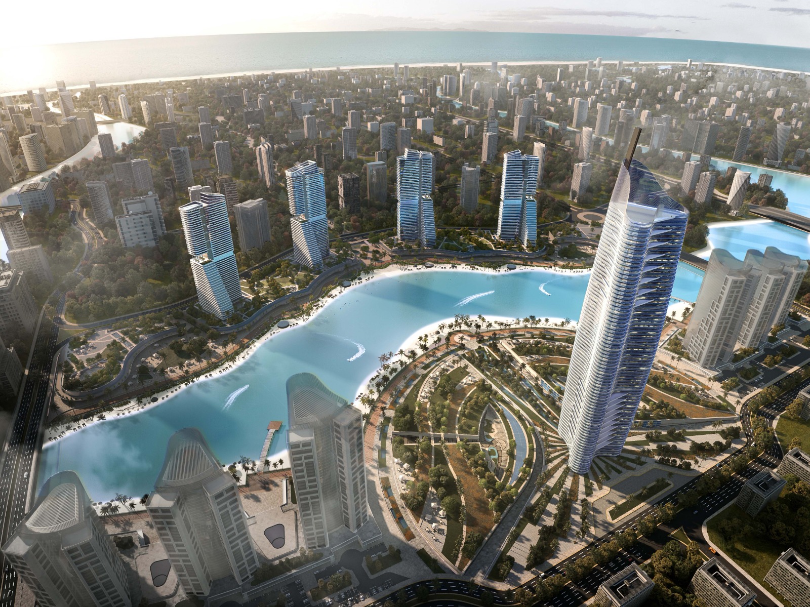 قال المهندس رضا بولس، مسئول المشروع بوزارة الاسكان والمجتمعات العمرانية، إن مشروع مدينة العلمين، يعد نموذج آخر للتعاون الصيني المصري في إطار مبادرة «الحزام والطريق» بعد مشروع العاصمة الإدارية الجديدة CBD، ويعد حاليًا أكبر مشروع تم توقيعه من قبل الشركة الصينية في السوق المصري، وهو أيضًا نقطة البداية ومركز بناء مدينة العلمين الجديدة، يشمل نطاق الأعمال في هذا المشروع تصميم وبناء برج أيقوني شاهق الارتفاع ومجهز جيدًا وأربعة أبراج سكنية شاهقة الارتفاع ومجهزة بدقة عالية ومرافق تجارية وهندسة المناظر الطبيعية، وتبلغ مساحة البناء حوالي 1.09 مليون متر مربع من بينها يبلغ ارتفاع البرج الأيقوني حوالي 300 متر، وتبلغ مساحته حوالي 460 ألف متر مربع، فهو يعد أكبر مساحة لمبني منفرد تابع للشركة الصينية في الخارج، وهو ايضًا أكبر مبني شاهق الارتفاع من الخرسانة المسلحة بالكامل في أفريقيا.