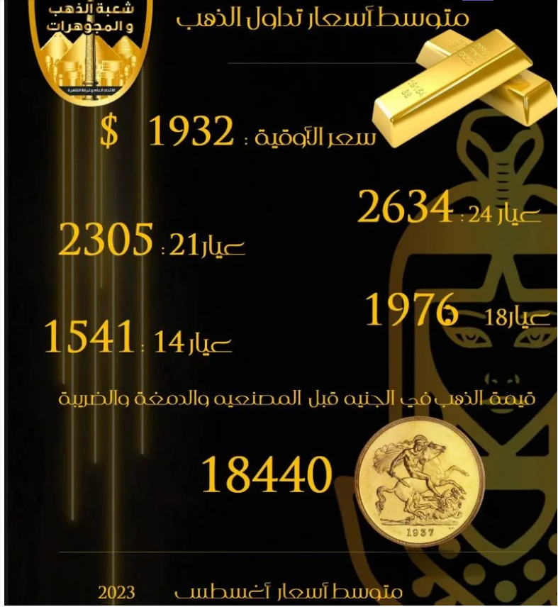 أعلنت شعبة الذهب والمجوهرات بالاتحاد العام للغرف التجارية عن متوسط أسعار الذهب خلال شهر أغسطس الجاري داخل الأسواق المحلية.